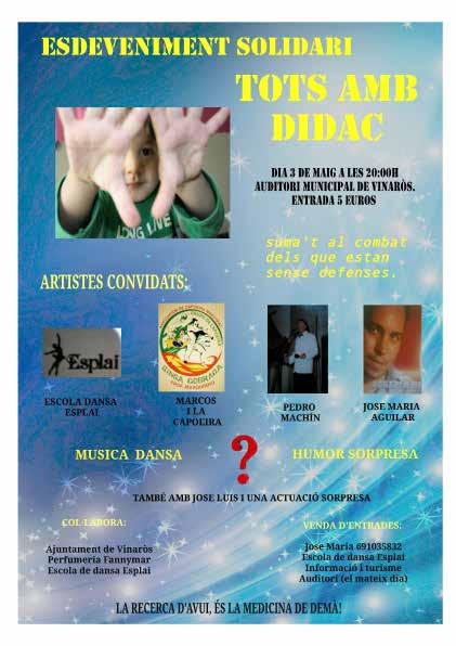 20 h, FESTIVAL a benefici de Dídac. Venda d’entrades a l’oficina d’informació i turisme (5 €)