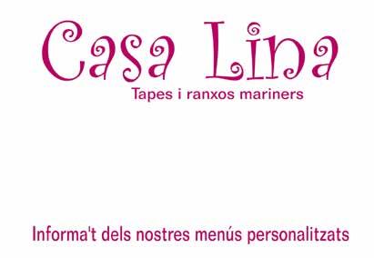 SERVICIO A DOMICILIO San Narciso esquina c/ Traval - VINARÒS Tels. 964 40 25 55 / 964 45 26 26 / Móvil 617 45 26 26 Pizzas y mucho más ¡ Si estás de vacaciones... ! EL RESTAURANT CAÇADOR C/ Major, 50 - 43559 Els Valentins 977 71 30 29 La cuina del Llagostí Juliol 2014 “Cuina de mercat i temporada”