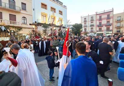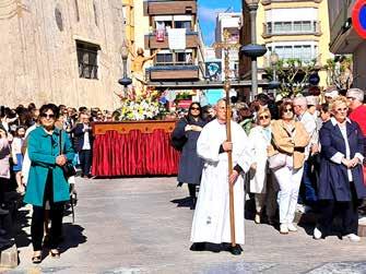 A continuación se formó la procesión ya completa, y por la c/. San Jaime y c/. Mayor se llegó a la Plaza parroquial, donde esperaban las cuatro bandas antes nombradas. A la llegada se entró en la iglesia donde se inició la misa del Domingo de Resurrección.