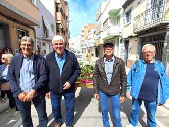 La comitiva estarà precedida, per la Banda de bombos i tambors de la confraria Crist de la Pau, que van tocar sense parar durant tota la pujada. Els portants de la peanya es van succeir entre voluntaris i voluntàries fent relleus des del carrer fins l’ ermita. Els xiquets portants fa 63 anys van rememorar aquell moment de forma testimonial; José Manuel, Agusti, Juanito i Sebastián van repetir la foto.