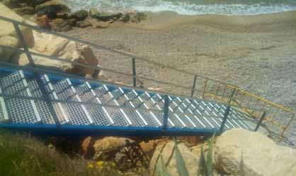 Ja han conclòs les obres de repara-ció de l’escala que dóna accés a l’entrada nord de la Cala Puntal I, una de les més extenses i visitades a la costa sud de Vinaròs. L’escala estava deteriorada pel pas del temps i l’acció erosiva del mar i presentava trams inestables, per la qual cosa s’ha optat per instal·lar una nova passarel·la que assegure un accés còmode a la platja. En total, s’han invertit 5.396 euros.
