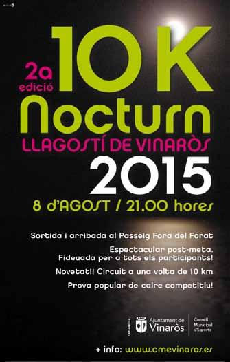 II 10K NOCTURN LLAGOSTÍ DE VINARÒS · 8 AGOST inscripció oberta a L’Oficina CME, Deportes Moliner Bernat, DJ Sports i Esports Arin de Benicarló. on-line www.carreraspopulares.com · www.runnershome.es www.mychip.es · www.42ypico.es ·www.free-run.es PREU: de 11 (26 de juliol) a 13 € (a partir del 27 de juliol)