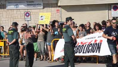 sistents a la correguda, però no va haver-hi incidents, en haver realitzat els agents de la Guàrdia Civil i la Policia Local un cordó de seguretat i vetllar perquè la situació no arribés a majors. Aquesta és la segona manifestació antitaurina a Vinaròs en escassos dos mesos. L’última, més multitudinària, va ser a la correguda de fires i va reunir a més d’un centenar de persones.