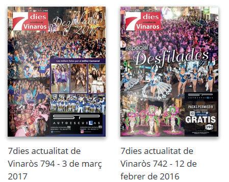 Pel que fa a la revista digital no professional, Vinaròs News, va suposar pràcticament un rècord de visites. Entre l' interés del Carnaval i la renovació feta de la web el setembre passat, van haver-hi més visites que mai després de molts anys dedicant un especial al Carnaval. Entre els 11 dies forts de Carnaval, no cap dia es baixà de 3.500 visites diàries; cal destacar que el diumenge 4 de febrer s'arribà a les 5.500 visites i també el dia 9, hi hagué 5.200 visites. Les "històries d'avui en dia" més vistes van ser en la seua majoria sobre el Carnaval. La de més audiència va ser /laura-albiol-mendez-una-reina-mas-allade-los-suenos/.