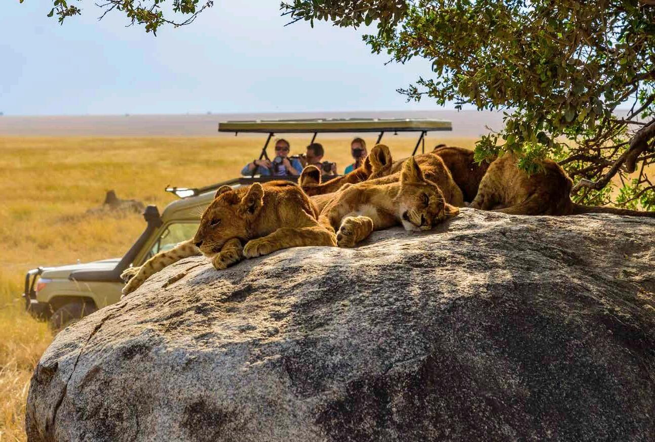 Ein Löwenrudel sonnt sich auf den berühmten Serengeti-Kopjes, und Sie können das Geschehen ruhig vom Safarifahrzeug aus beobachten. ist ebenso beeindruckend: Löwen, Giraffen, Topis, Elefanten und viele andere Arten lassen sich häufig beobachten. Im Vergleich zu zentraleren Gebieten der Serengeti ist Togoro weniger besucht und bietet eine ruhigere und exklusivere Safari-Atmosphäre mit ungestörtem Blick auf die weiten Ebenen.