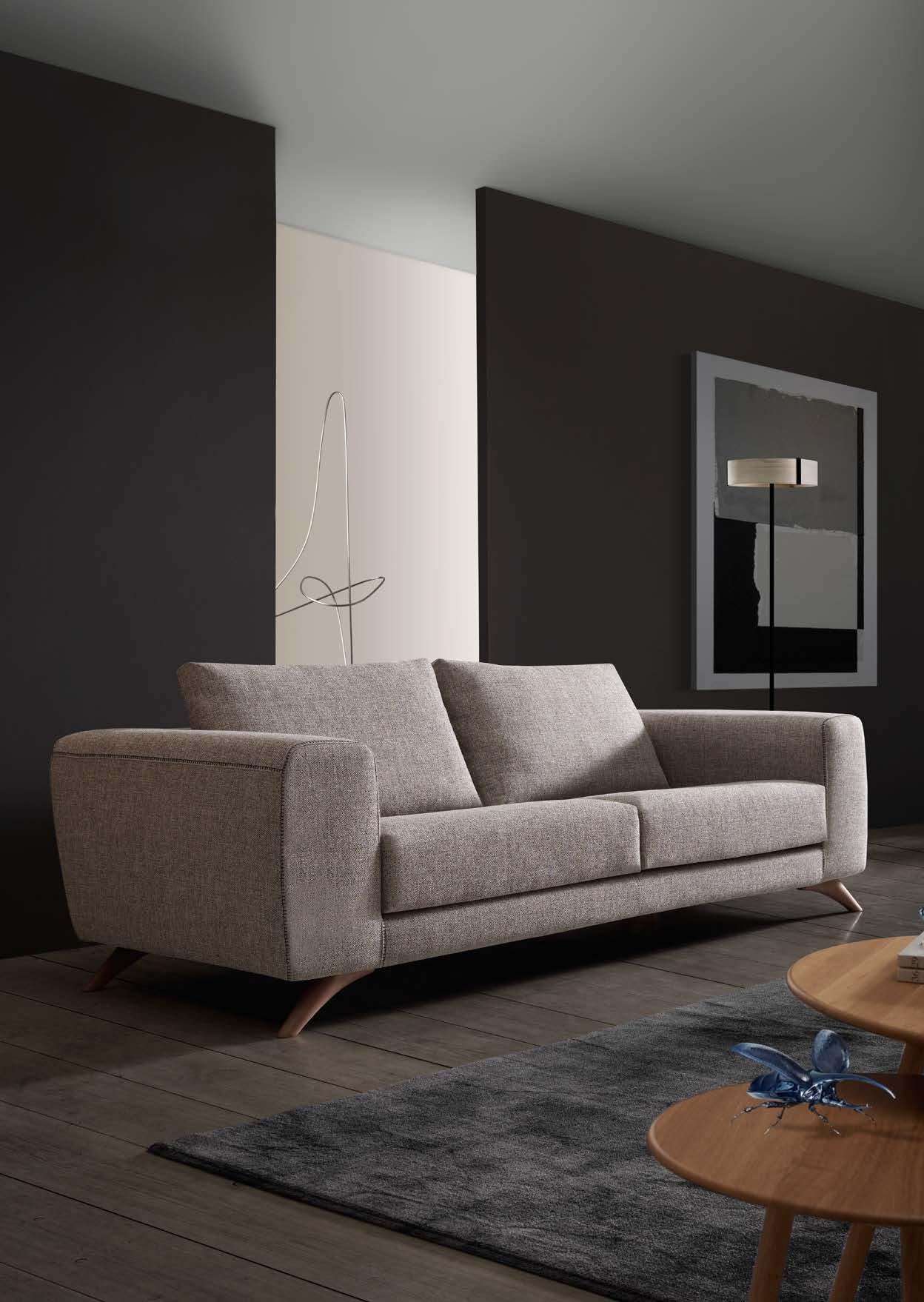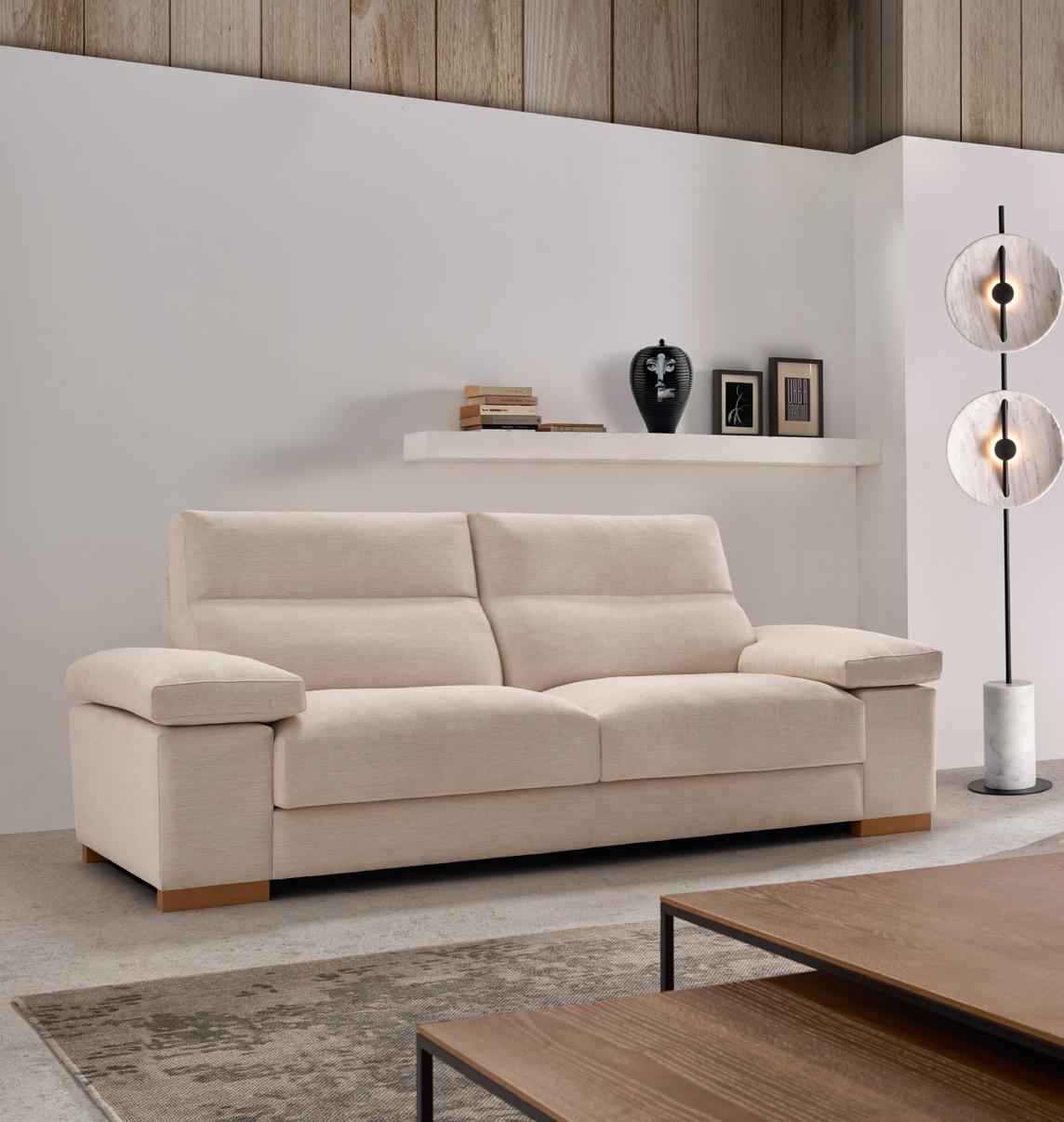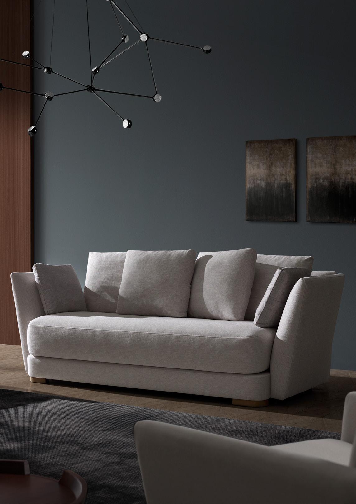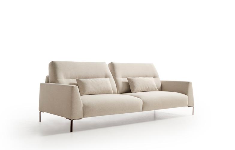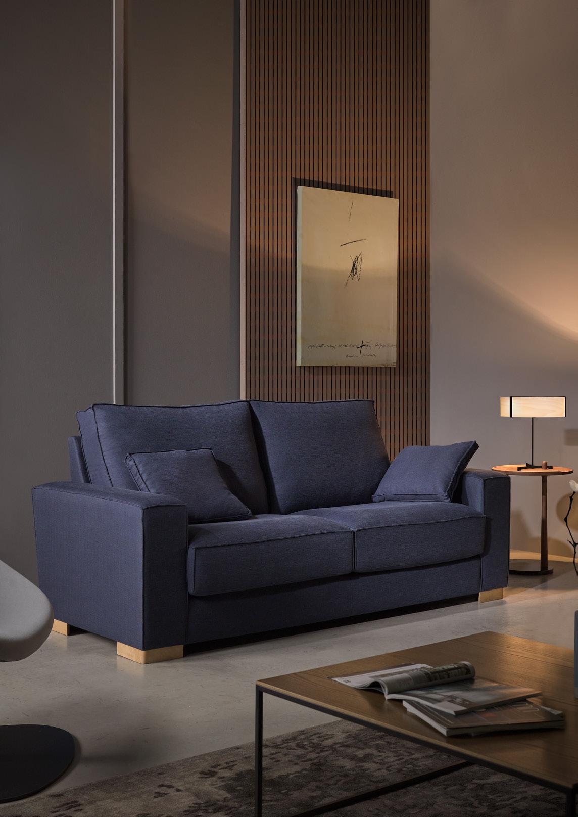 Oliv, contemporary sofa with a classic taste. This piece keeps the perfect balance of proportions, with a discreet presence, which nevertheless radiates a halo of comfort and spaciousness. Its outstanding comfort is mainly due to the pleasant softnesss of its upholstery, wich completely surrounds you and avoids direct contact with the hardest structural elements.