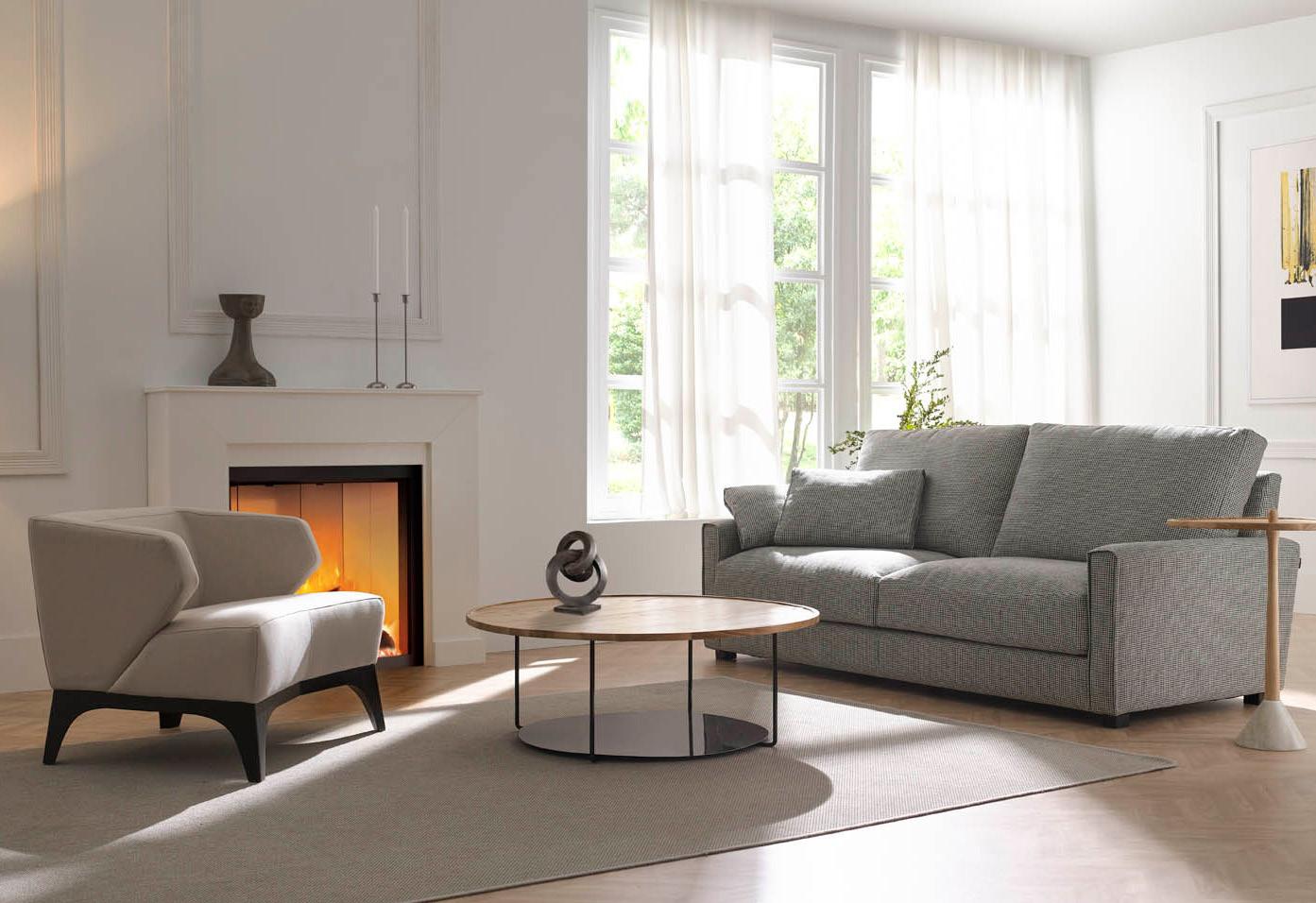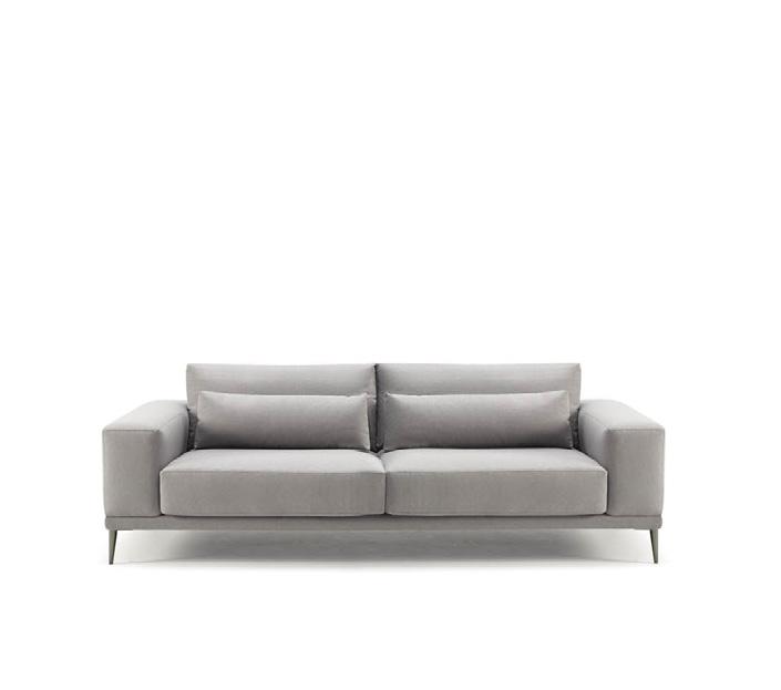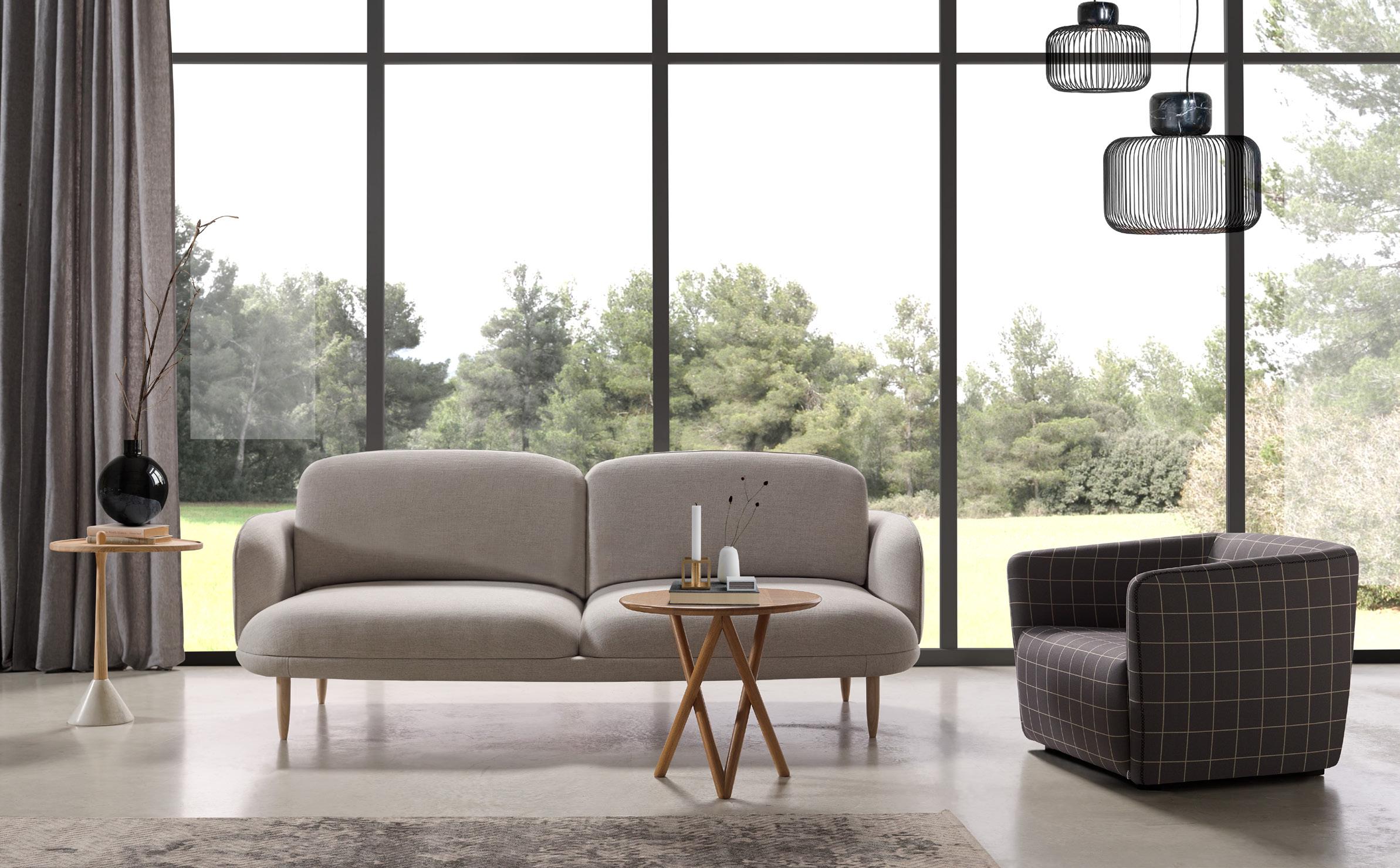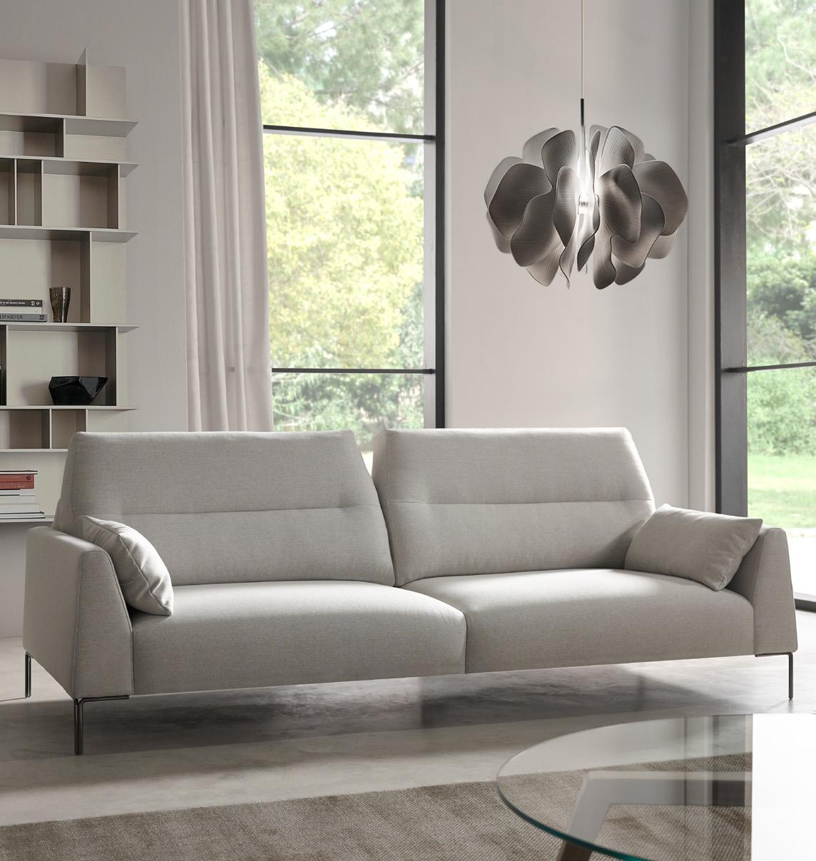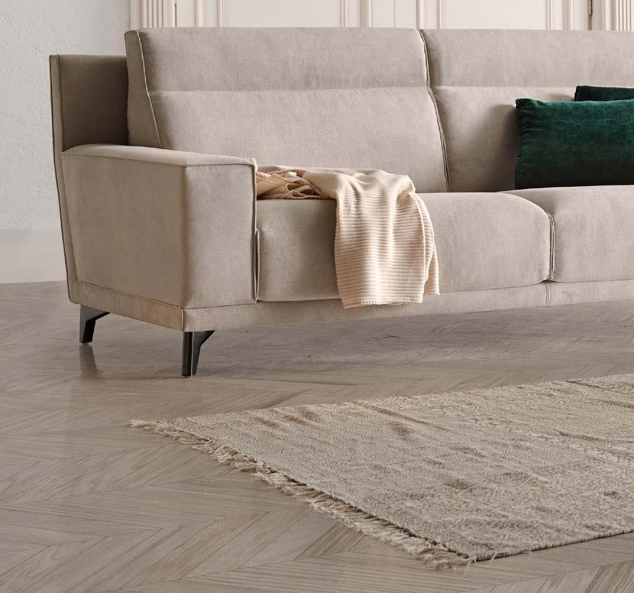 Oliv, contemporary sofa with a classic taste. This piece keeps the perfect balance of proportions, with a discreet presence, which nevertheless radiates a halo of comfort and spaciousness. Its outstanding comfort is mainly due to the pleasant softnesss of its upholstery, wich completely surrounds you and avoids direct contact with the hardest structural elements.
