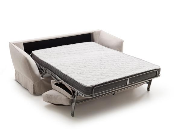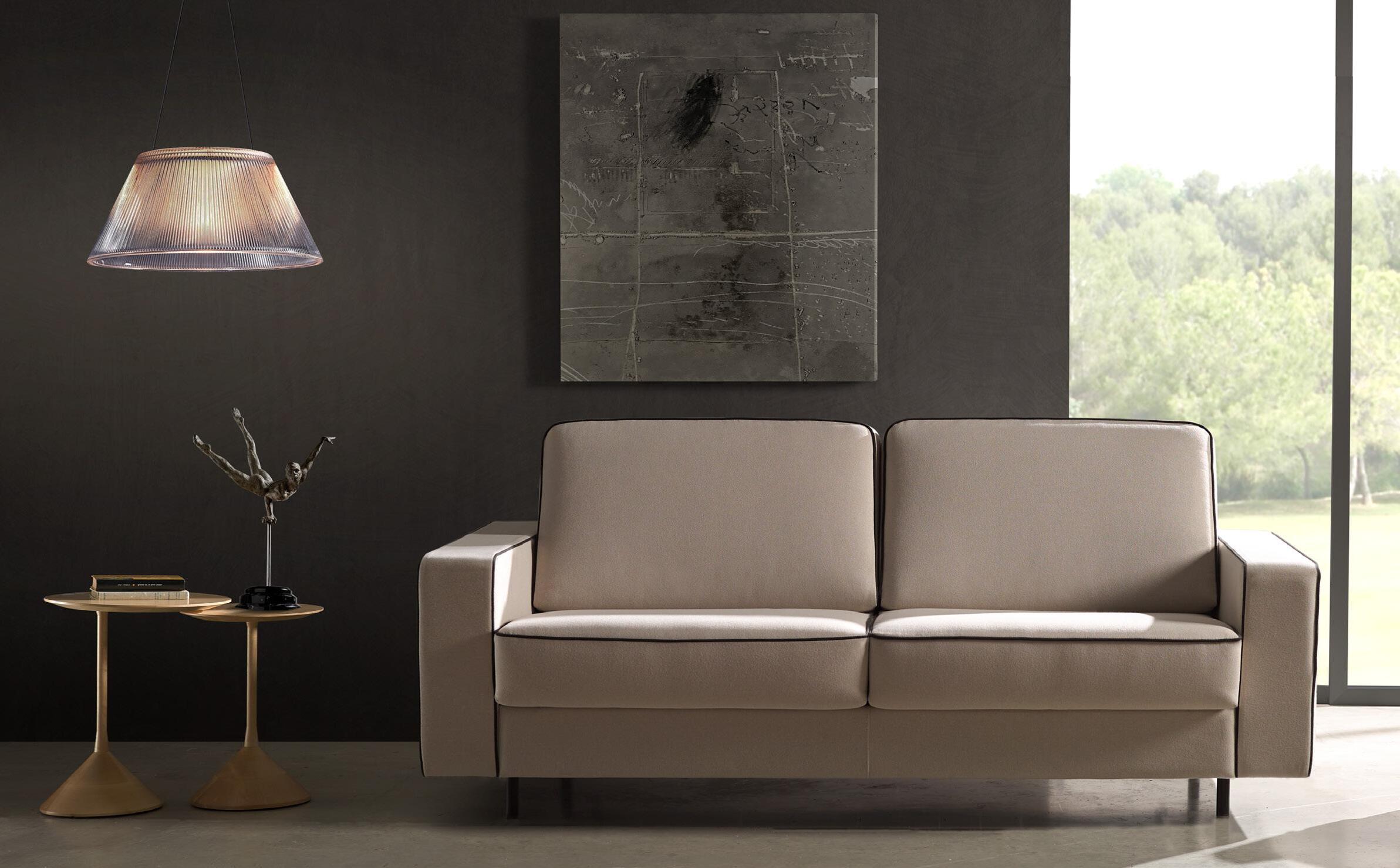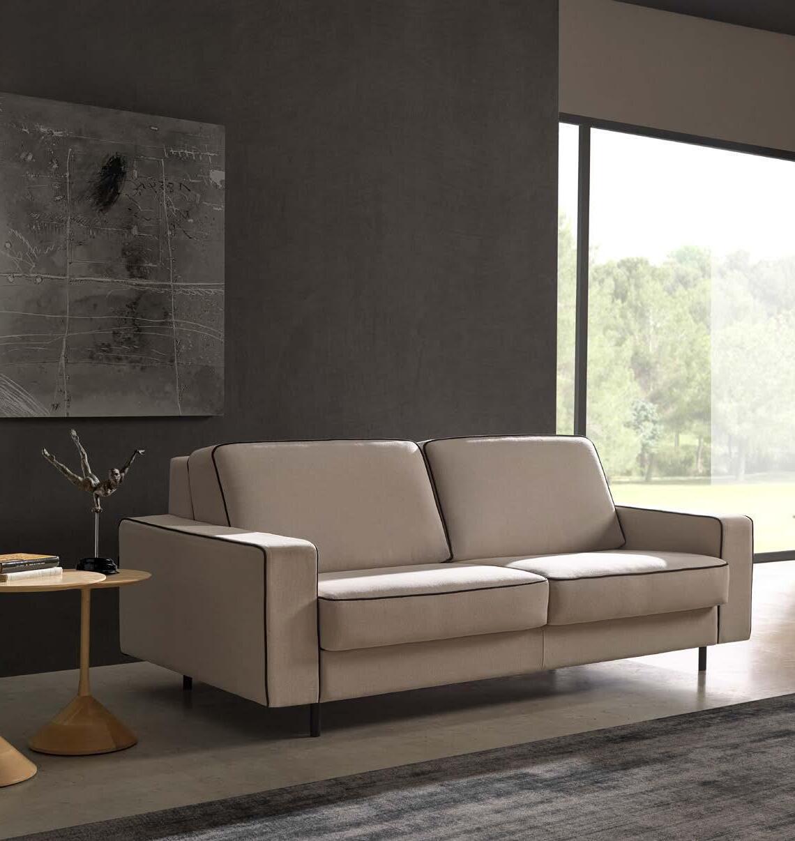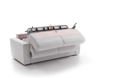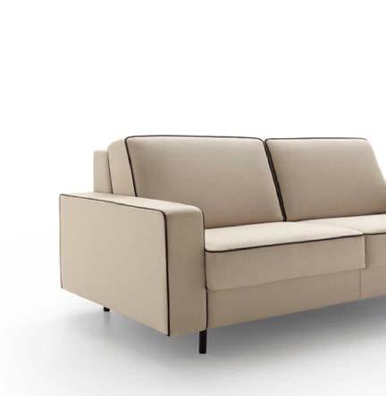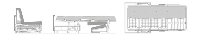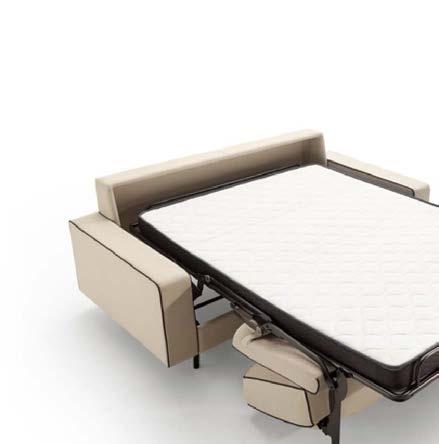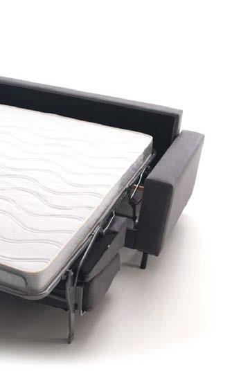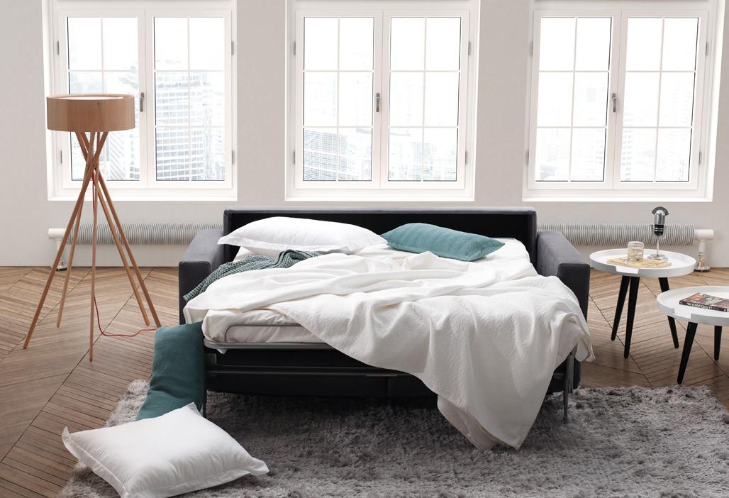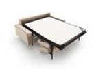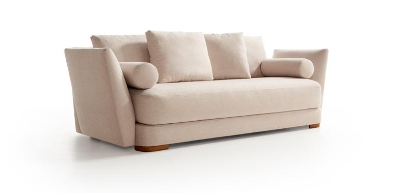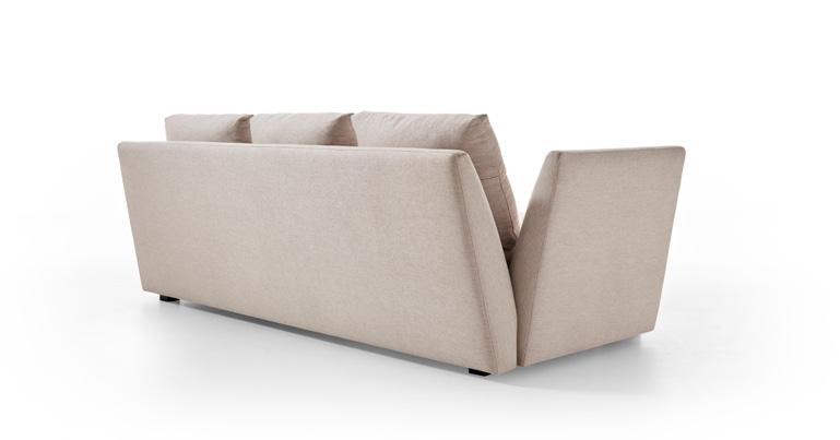 Daro, sofá cama de líneas puras con un diseño estudiado que da como resultado un objeto práctico, funcional y bello. Sistema de apertura tipo italiana, Mecanismo de movimiento con apertura frontal mediante rotación del respaldo en un único movimiento. El paso de la posición sofá a la posición cama tiene lugar sin mover o quitar ninguno de los elementos de la tapicería. Posibilidad de guardar las almohadas de la cama en el interior de los respaldos.