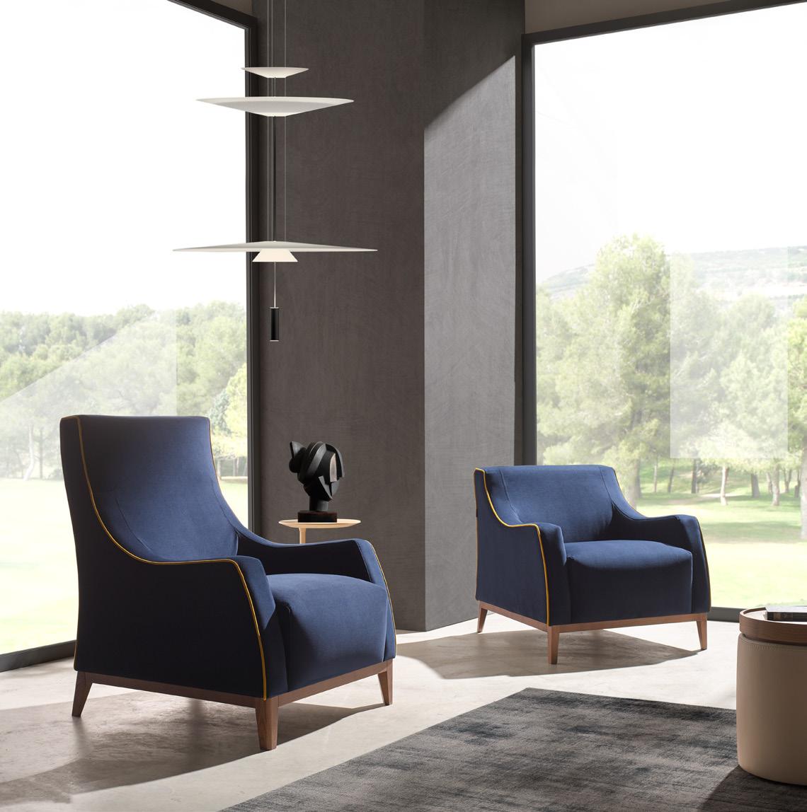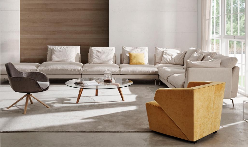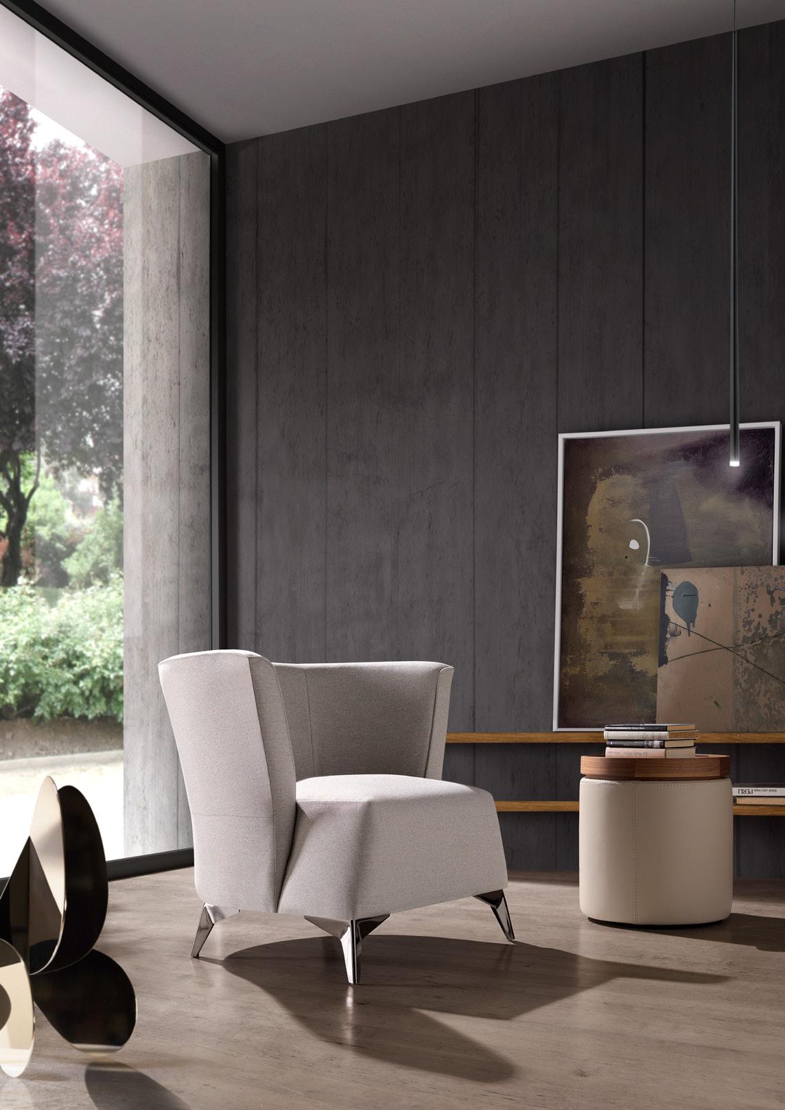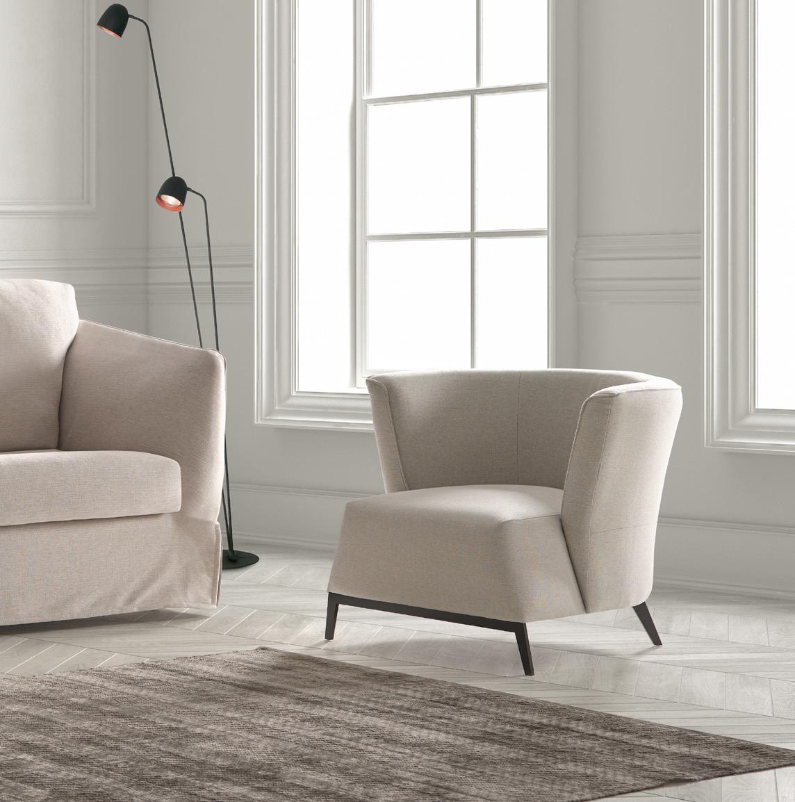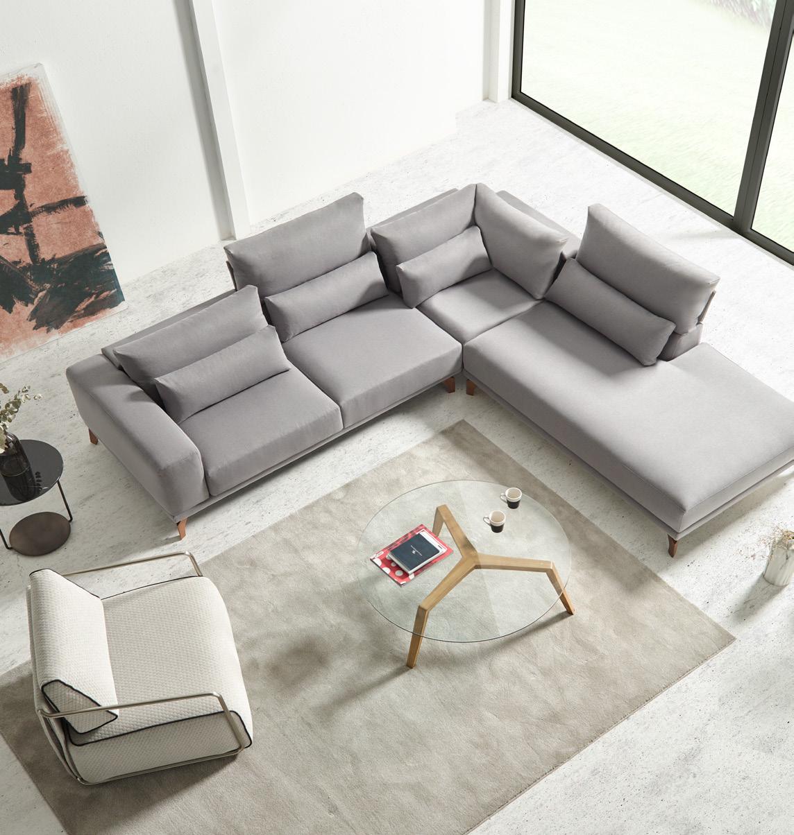 Esta propuesta tiene como objetivo el resultado de una síntesis entre la innovación y el clasicismo, que se caracteriza por la posibilidad de crear un acogedor espacio entorno al sofá, gracias a su geometría. El conjunto brazo-respaldo destaca su diseño, por el deseo de ofrecer un toque diferenciador, moderno.
