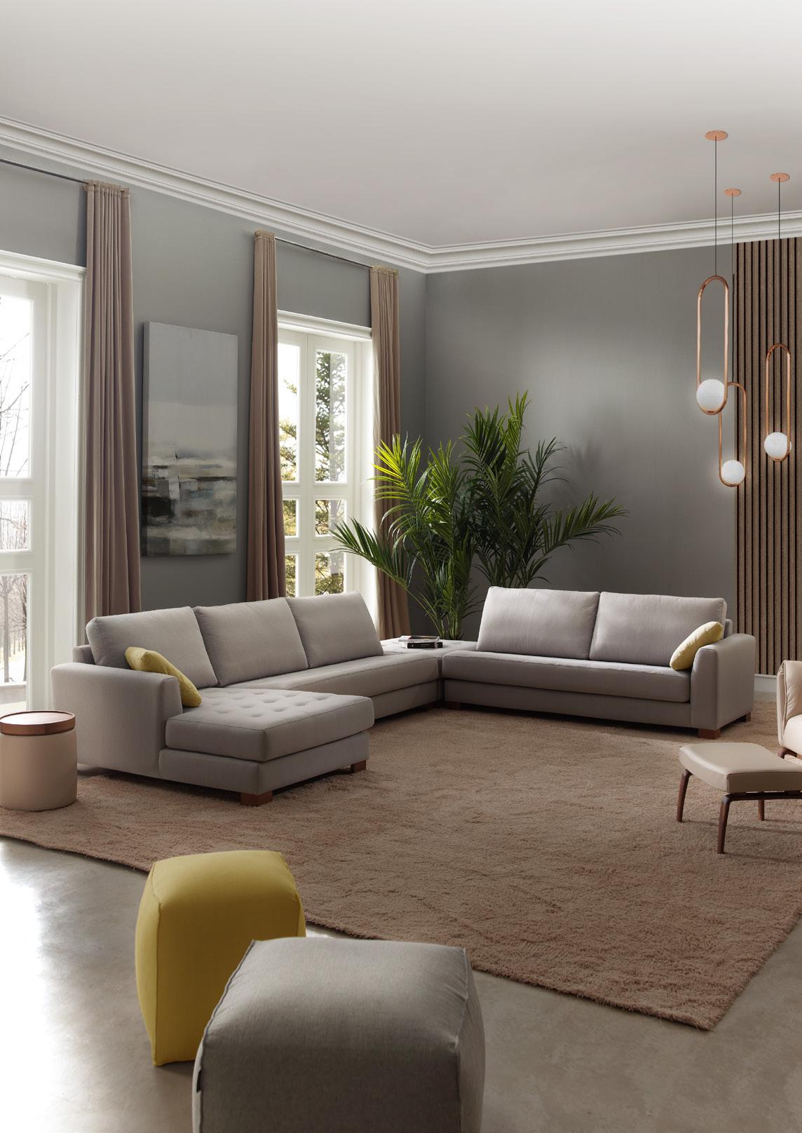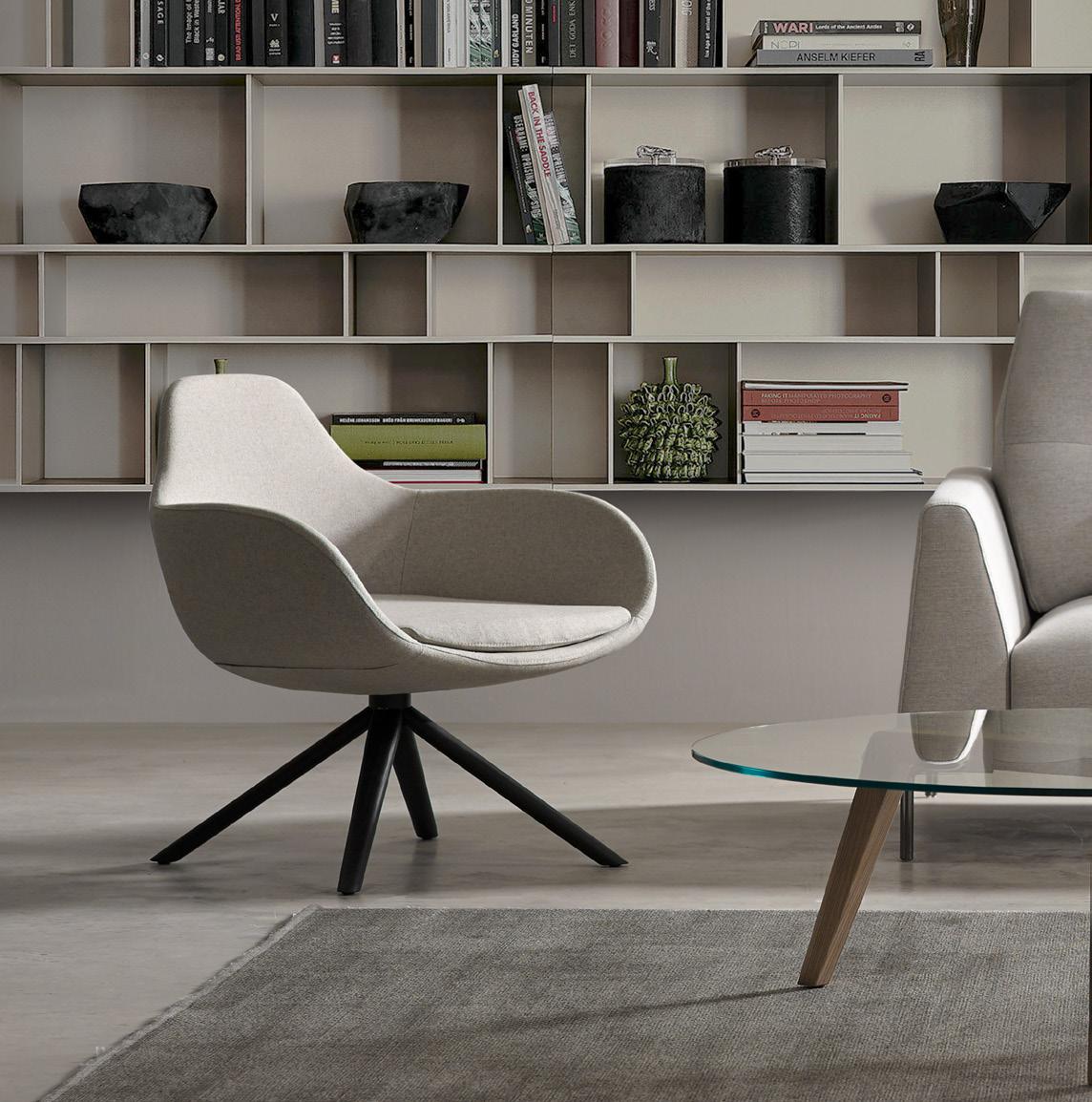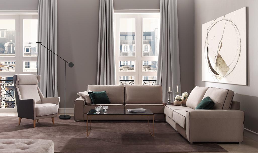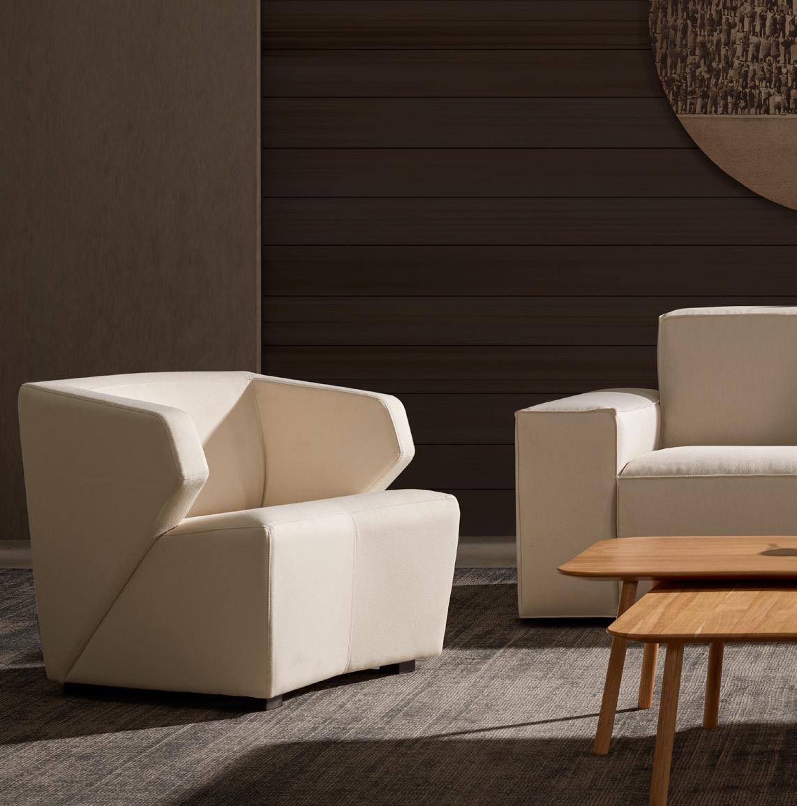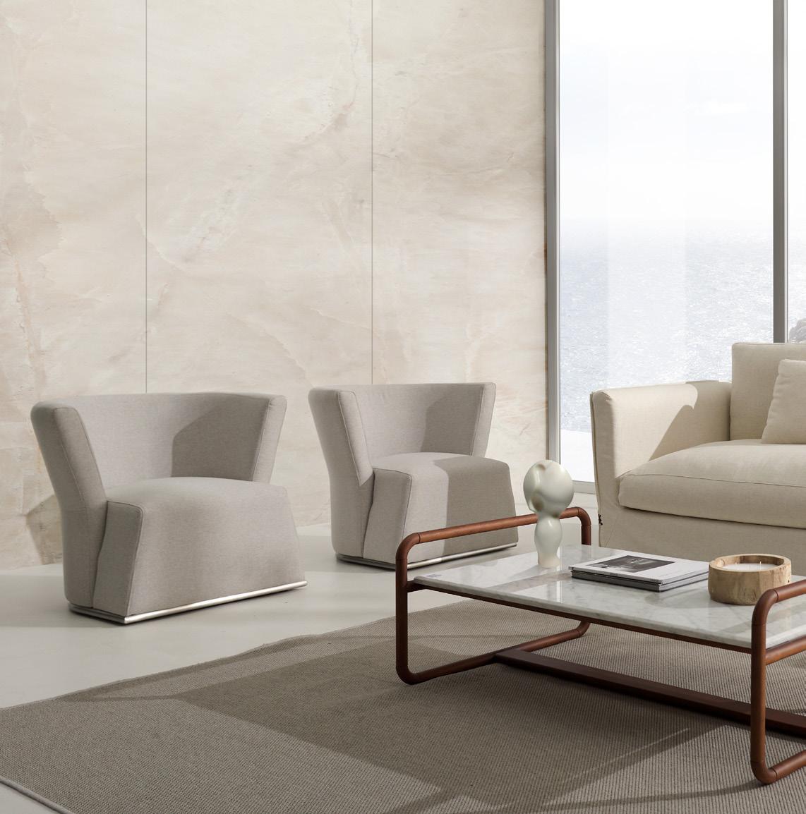 Esta propuesta tiene como objetivo el resultado de una síntesis entre la innovación y el clasicismo, que se caracteriza por la posibilidad de crear un acogedor espacio entorno al sofá, gracias a su geometría. El conjunto brazo-respaldo destaca su diseño, por el deseo de ofrecer un toque diferenciador, moderno.
