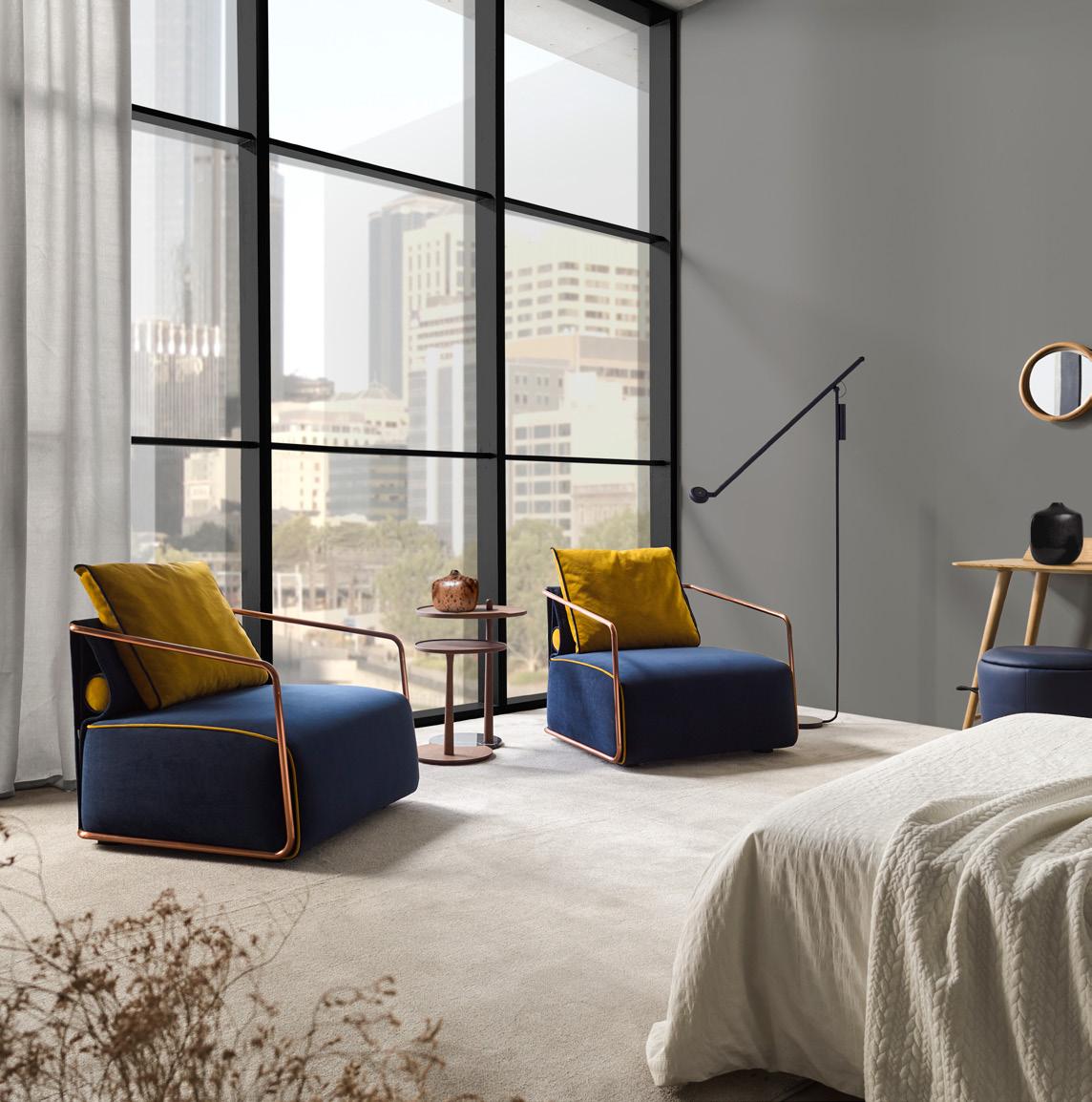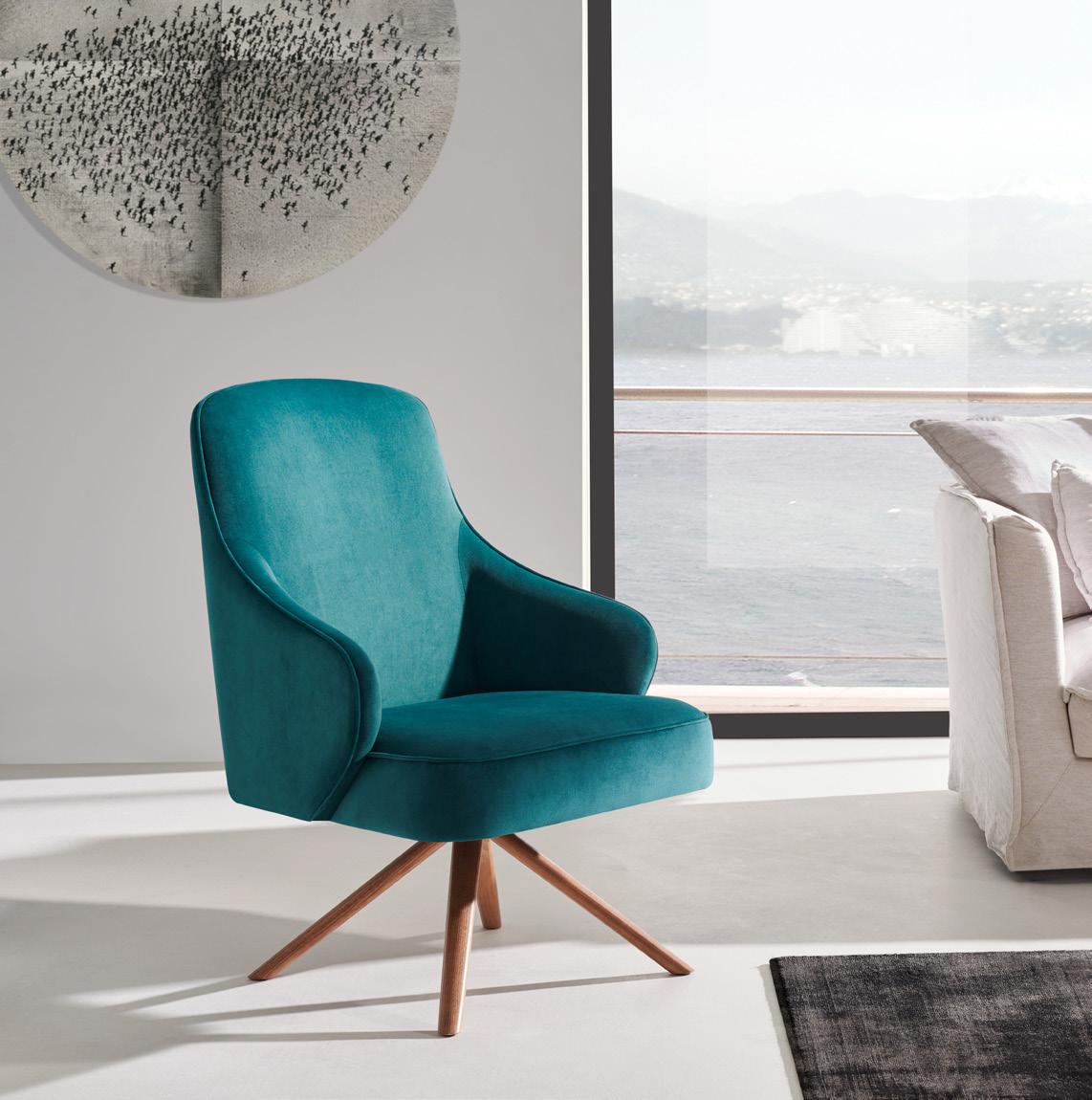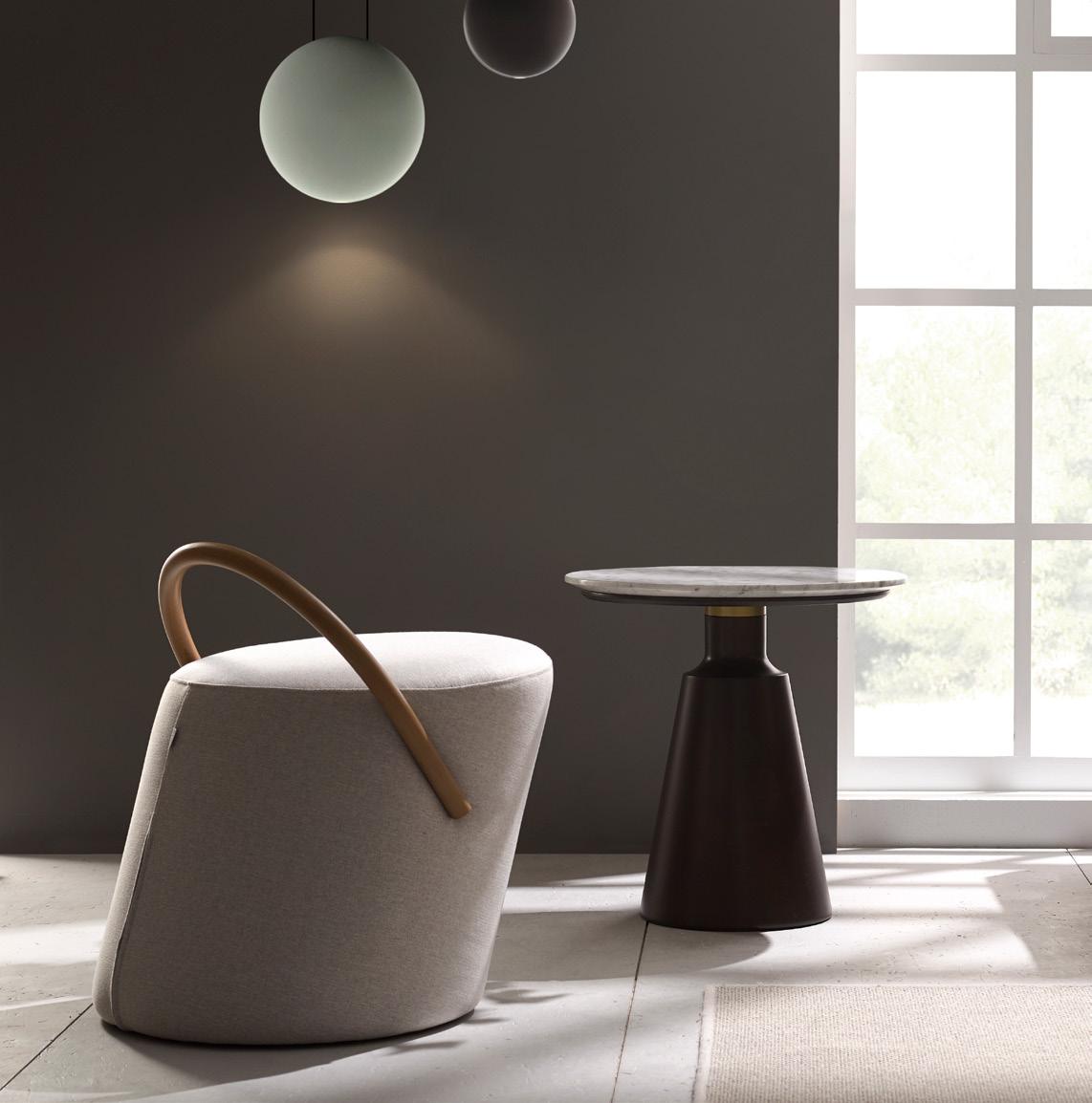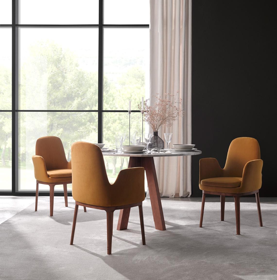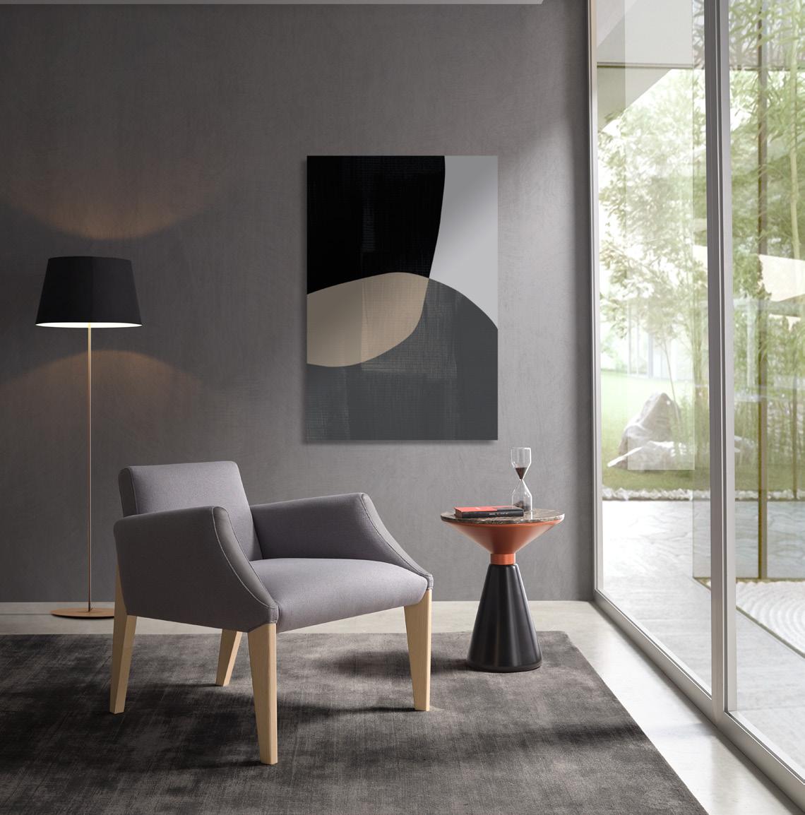 Esta propuesta tiene como objetivo el resultado de una síntesis entre la innovación y el clasicismo, que se caracteriza por la posibilidad de crear un acogedor espacio entorno al sofá, gracias a su geometría. El conjunto brazo-respaldo destaca su diseño, por el deseo de ofrecer un toque diferenciador, moderno.