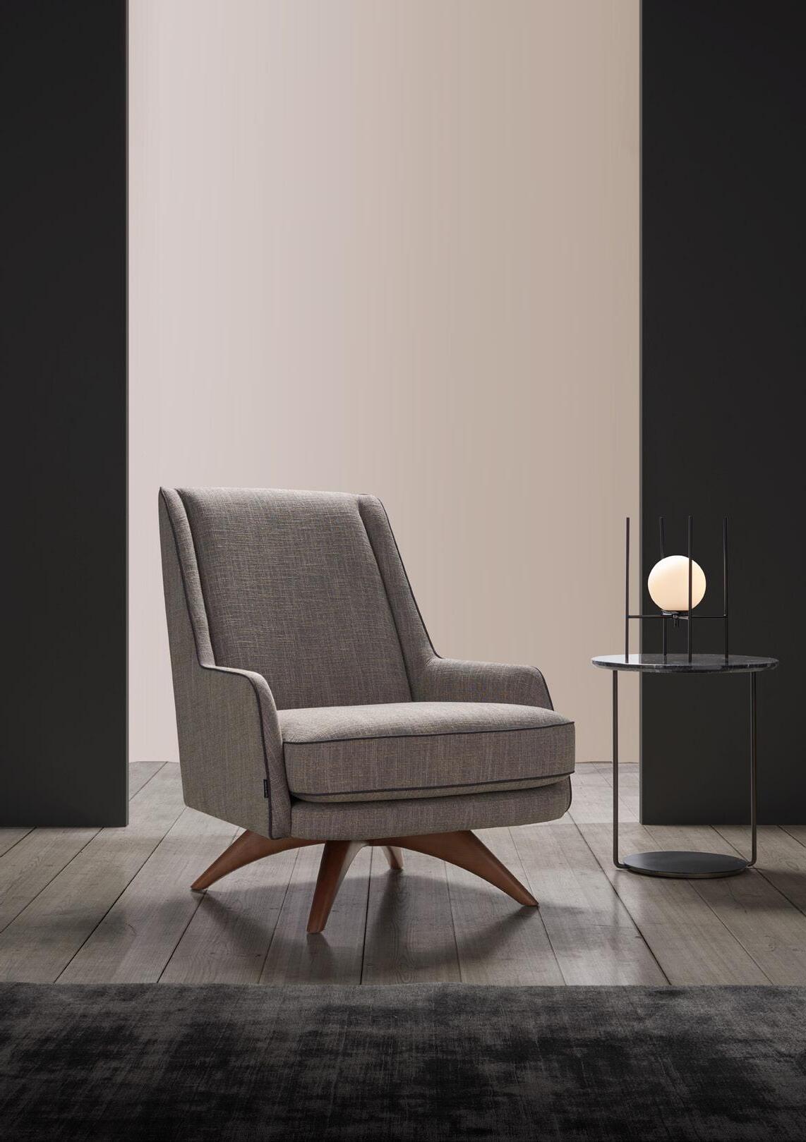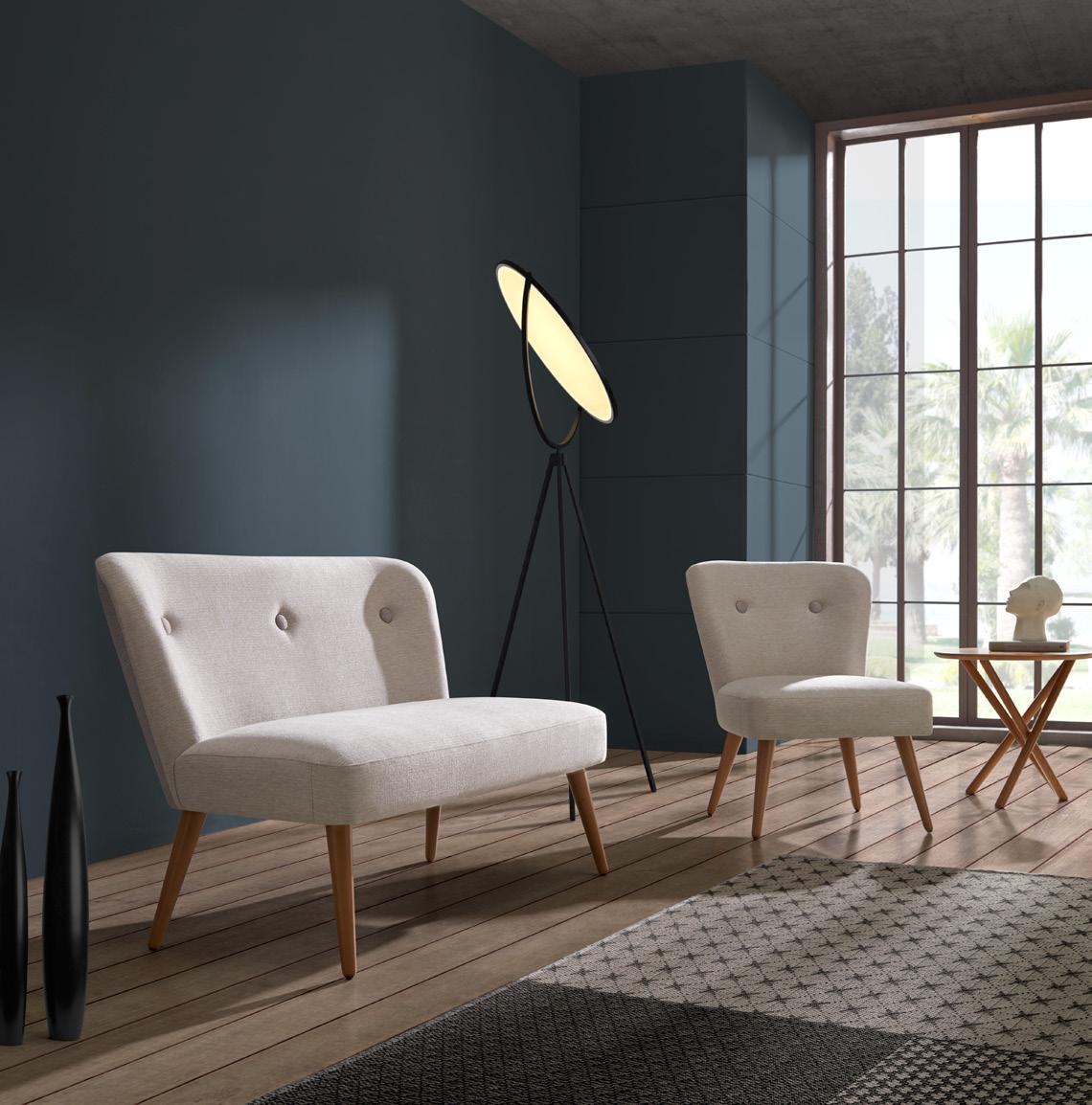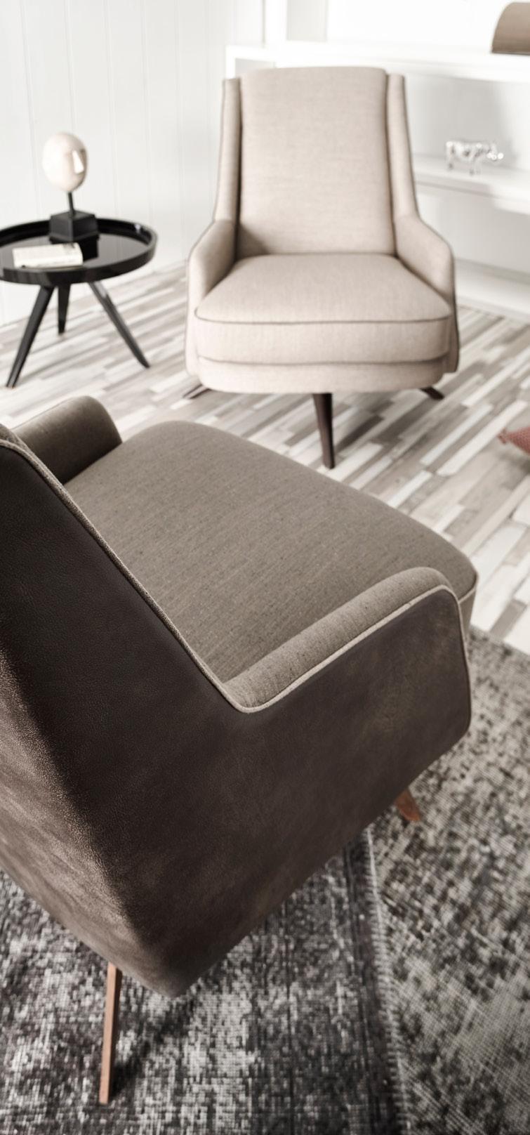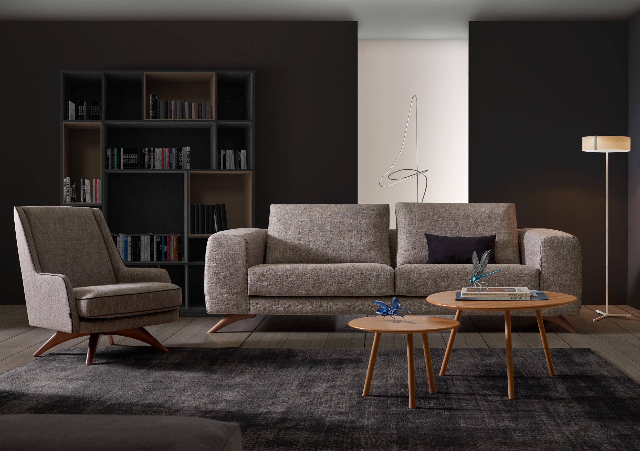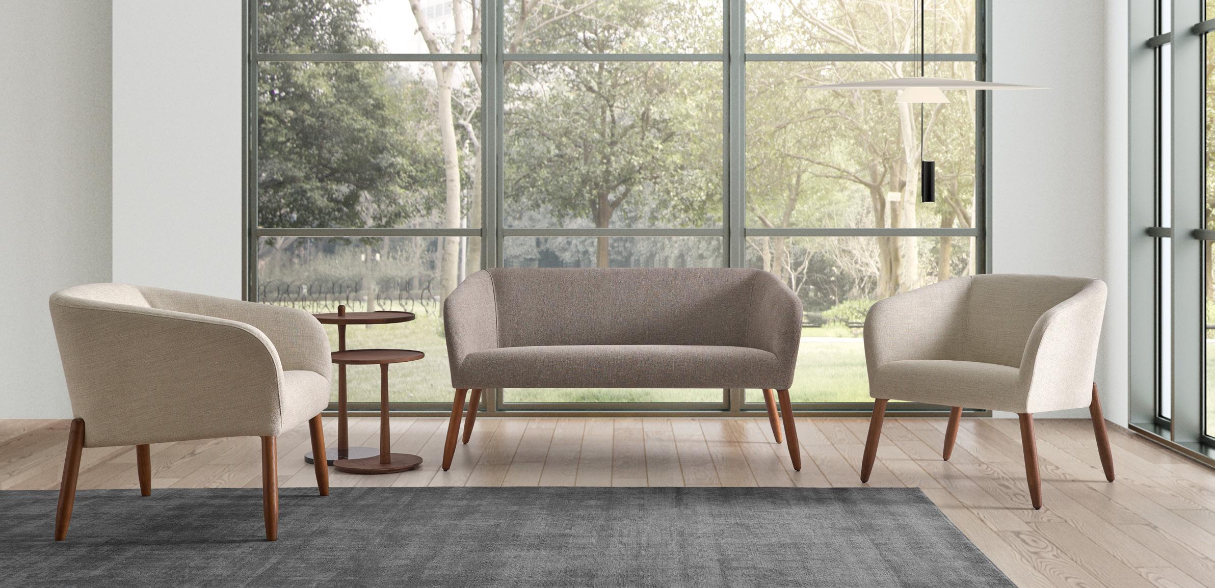 Esta propuesta tiene como objetivo el resultado de una síntesis entre la innovación y el clasicismo, que se caracteriza por la posibilidad de crear un acogedor espacio entorno al sofá, gracias a su geometría. El conjunto brazo-respaldo destaca su diseño, por el deseo de ofrecer un toque diferenciador, moderno.
