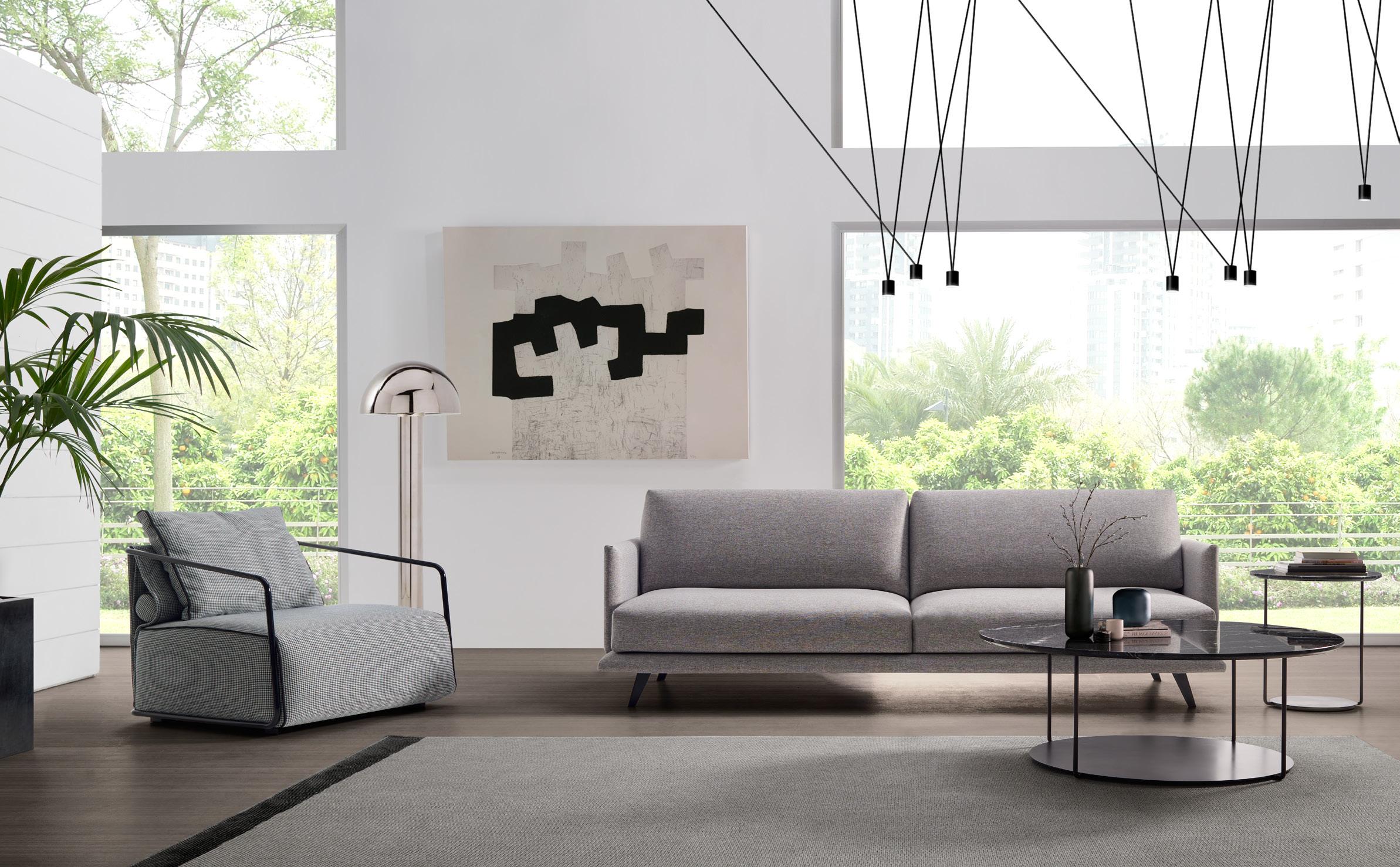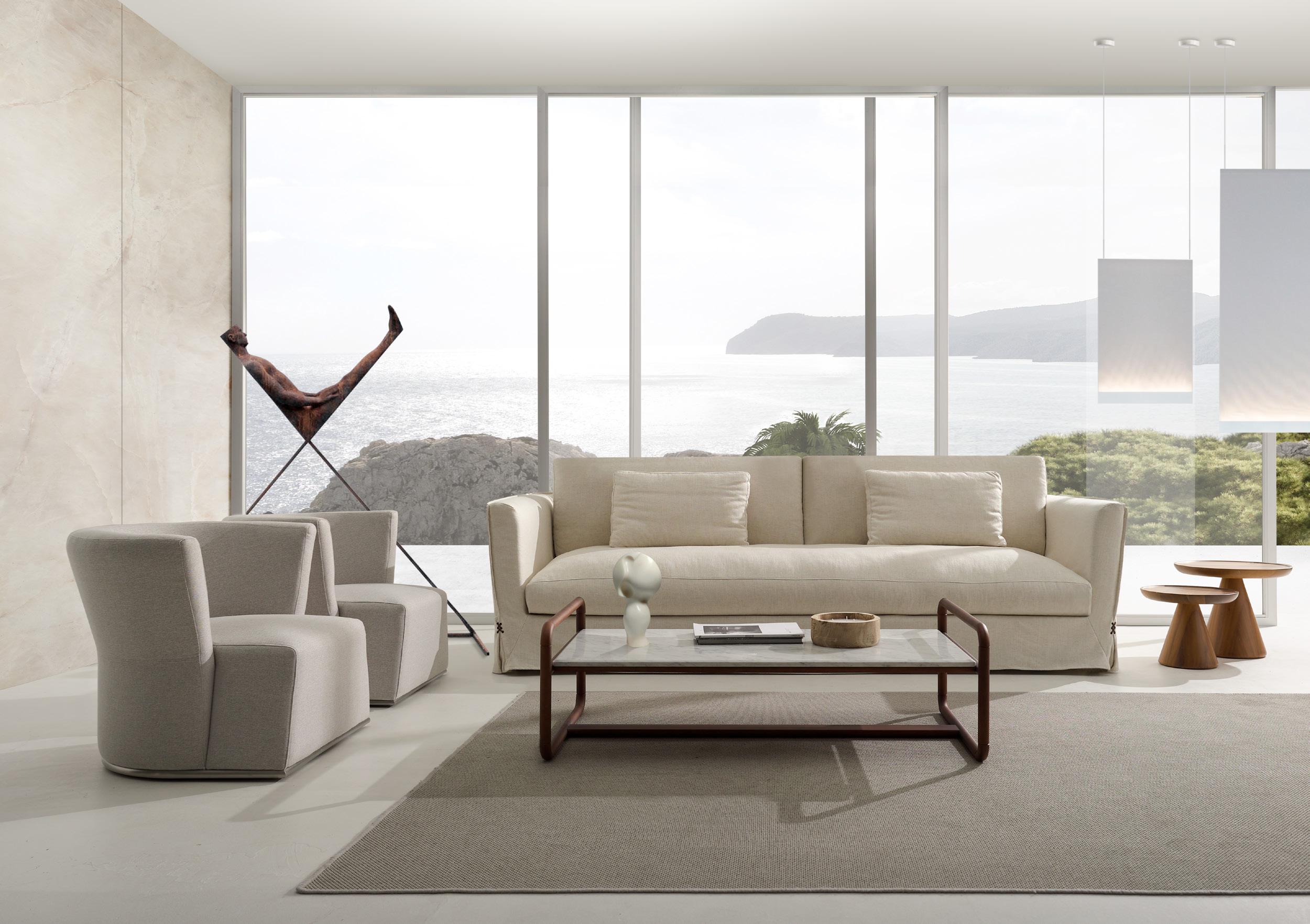 Slim, a lightweight and elegant sofa; and however it is not governed by the geometry but by art. The detail becomes the best way to convert acasual object in a timeless one. A model with a wide modular variety that has been conceived as a practical yet aesthetic solution for users who know the importance of a good design.