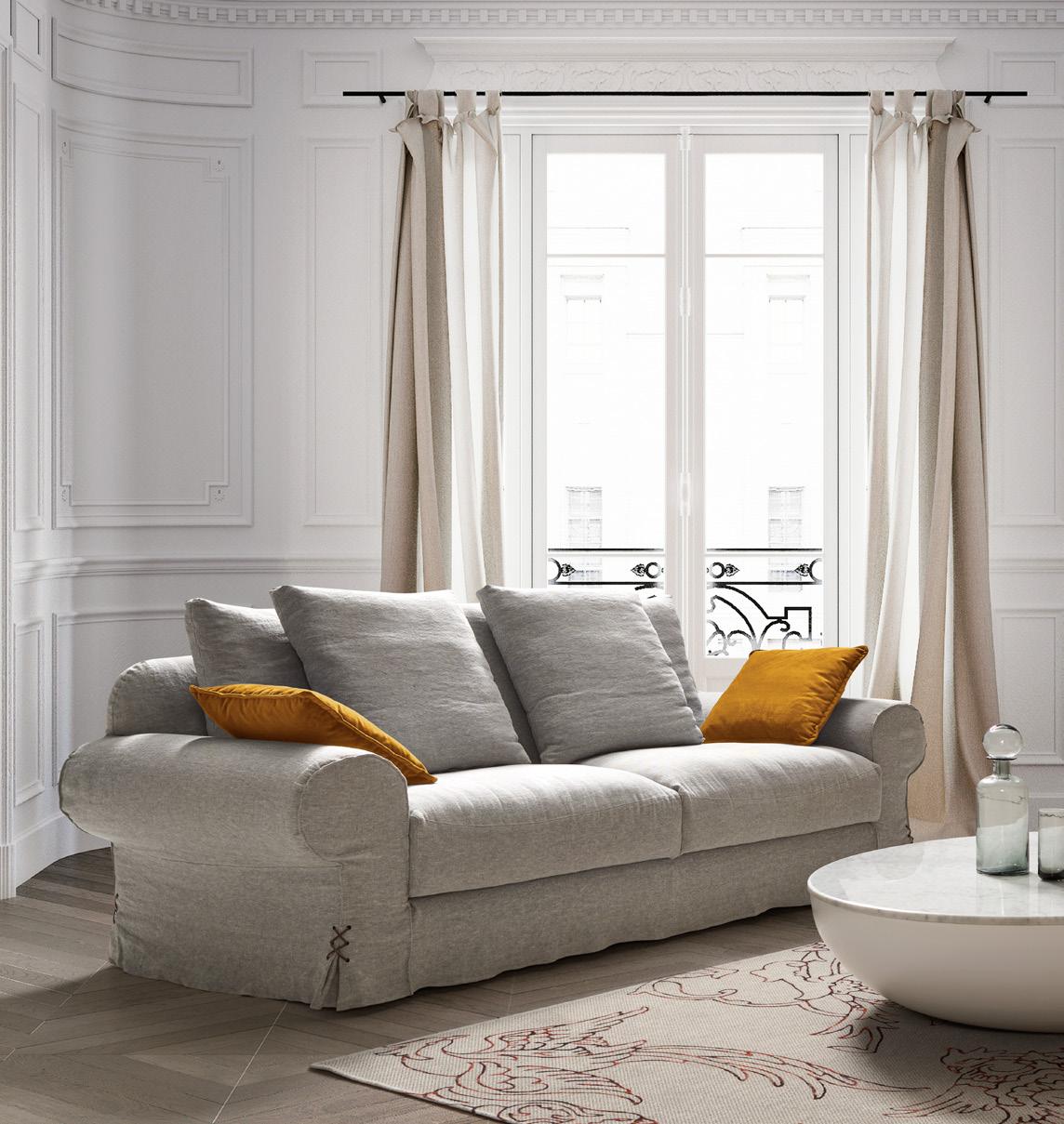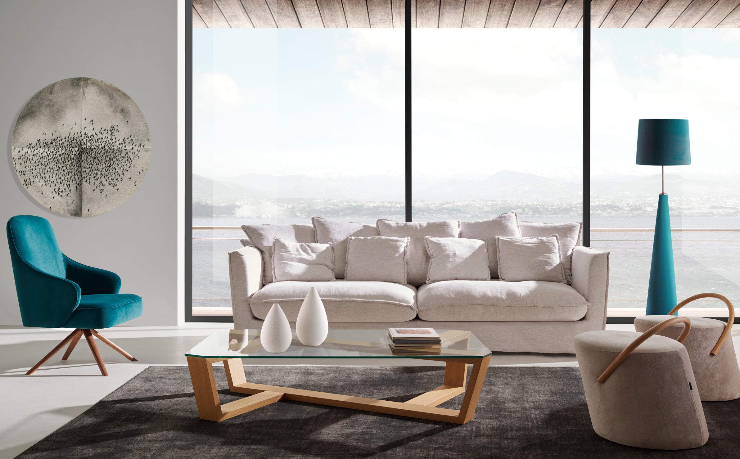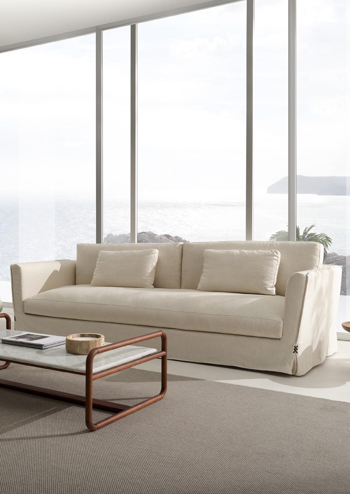 oft, a different sofa, comple in terms of its initial concept but with an impeccable result. A classic spirit translated into a contemporary language through the use of line and shape. A stimulating exercise in the exploration of the formal avant-garde. In the execution resides its soul, and comfort is its style. A sofa with a casual, bohemian and stylish look. Removable covers.