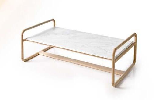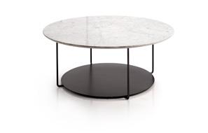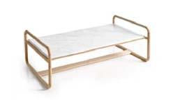 EVEN side table, white marble and oak finish wood. Dimensions CM 122x122 H33.