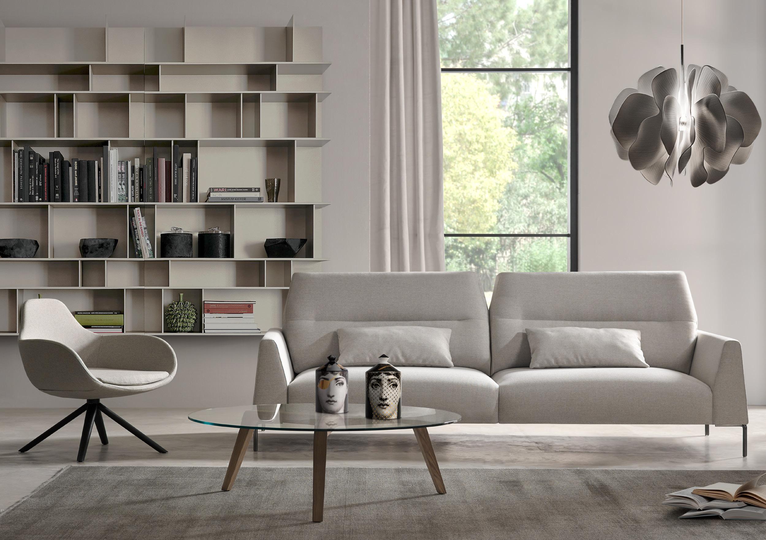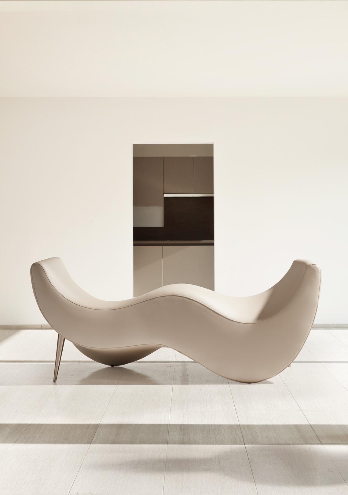 Slim, un sofá ligero, horizontal, elegante; y sin embargo no está regido por la geometría sino por el arte. El detalle se convierte en la mejor forma de convertir un objeto casual en un objeto atemporal. Un modelo con una gran variedad modular que ha sido concebido como una solución práctico-estética para los usuarios conocedores de la importancia de un buen diseño.
