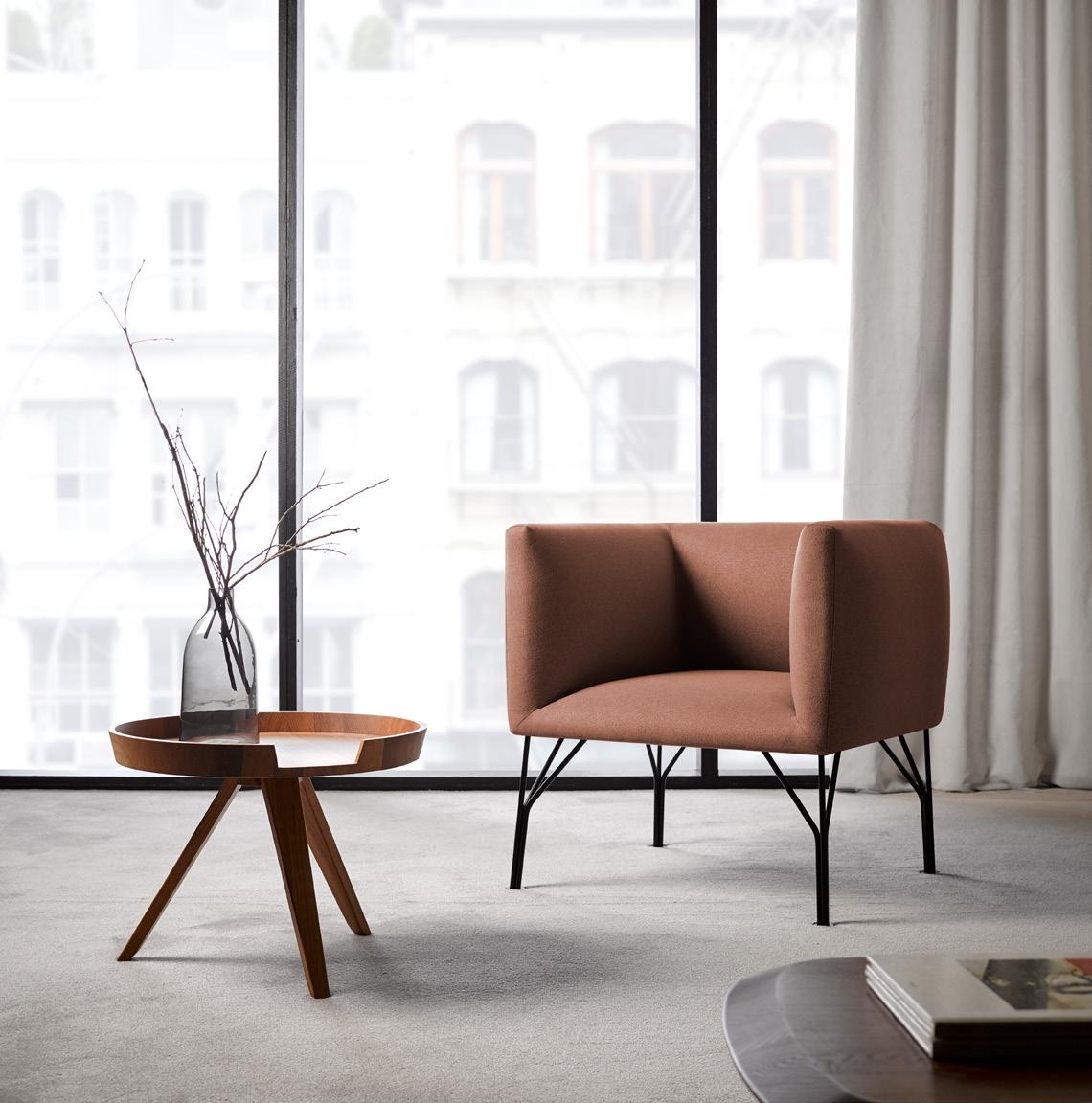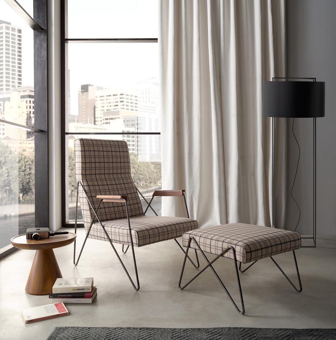 Axis seeks the essence of the objects to become a powerful sign of expression. Through the refining of shapes we obtain a model of precise lines in which the movement of the arm in which we see the different and convenient positions at one’s disposal. Additionally, its characteristic cushions grant the users an outstanding comfort level. The arms with hinges are easily removed.