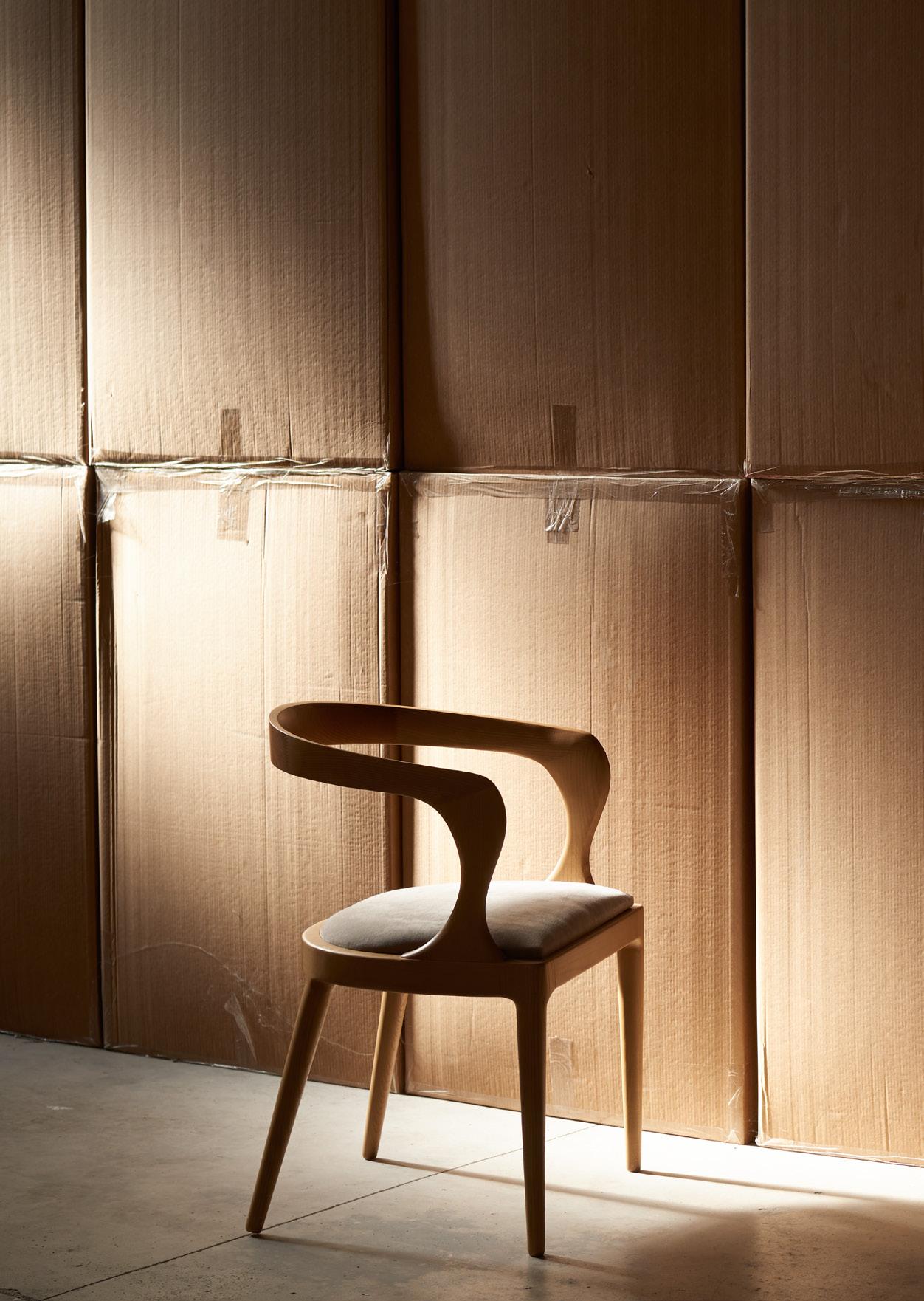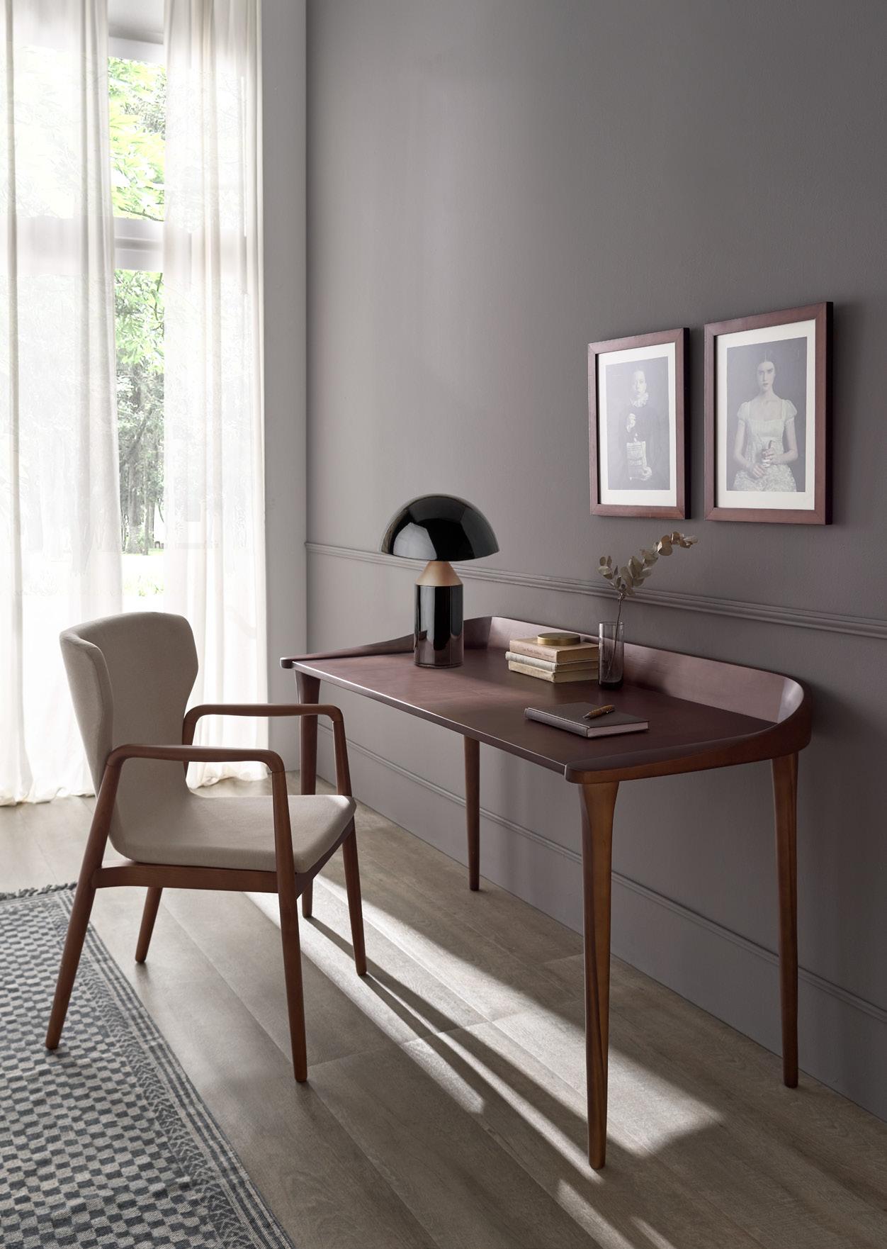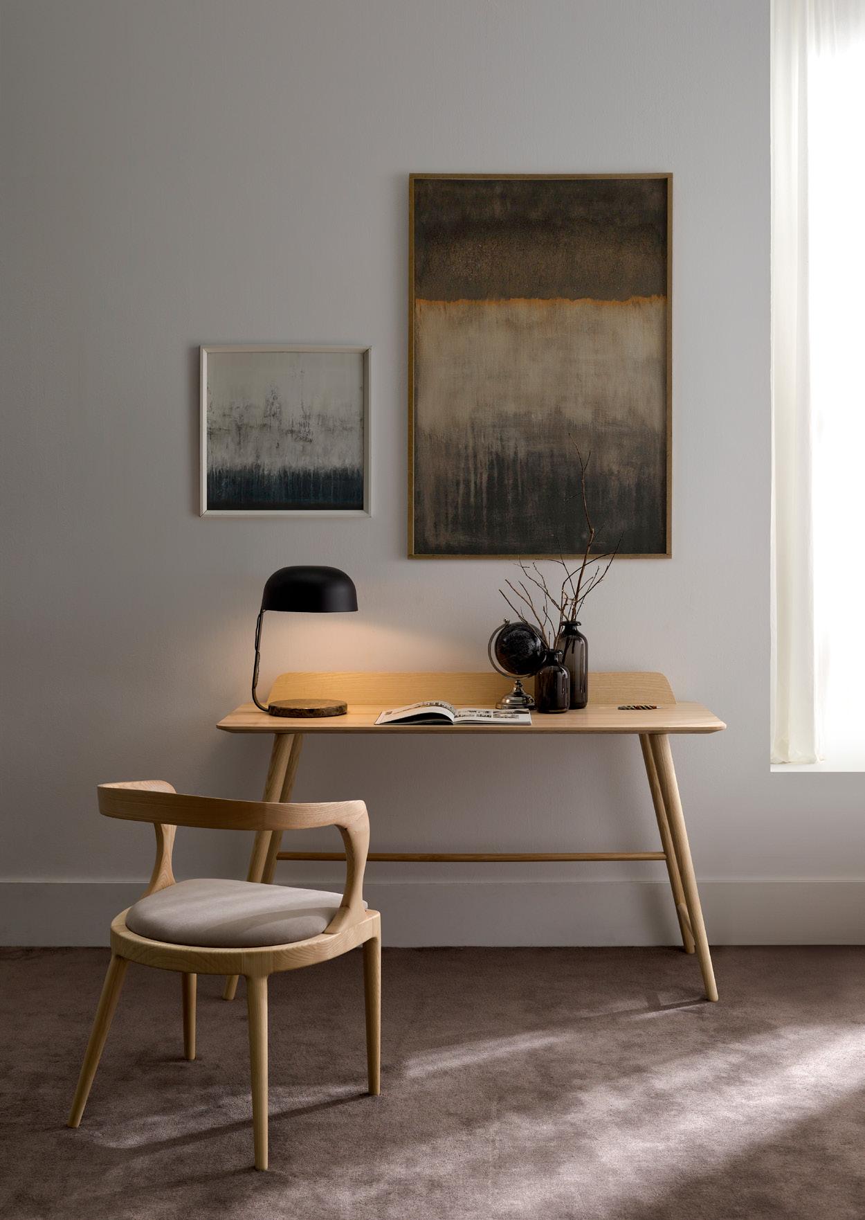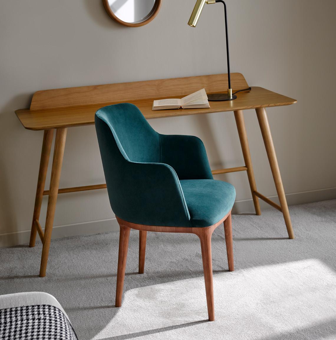 suave cuerpo de esta pieza descansa sobre unas delicadas patas de madera maciza torneada que consiguen que parezca realmente ligero.