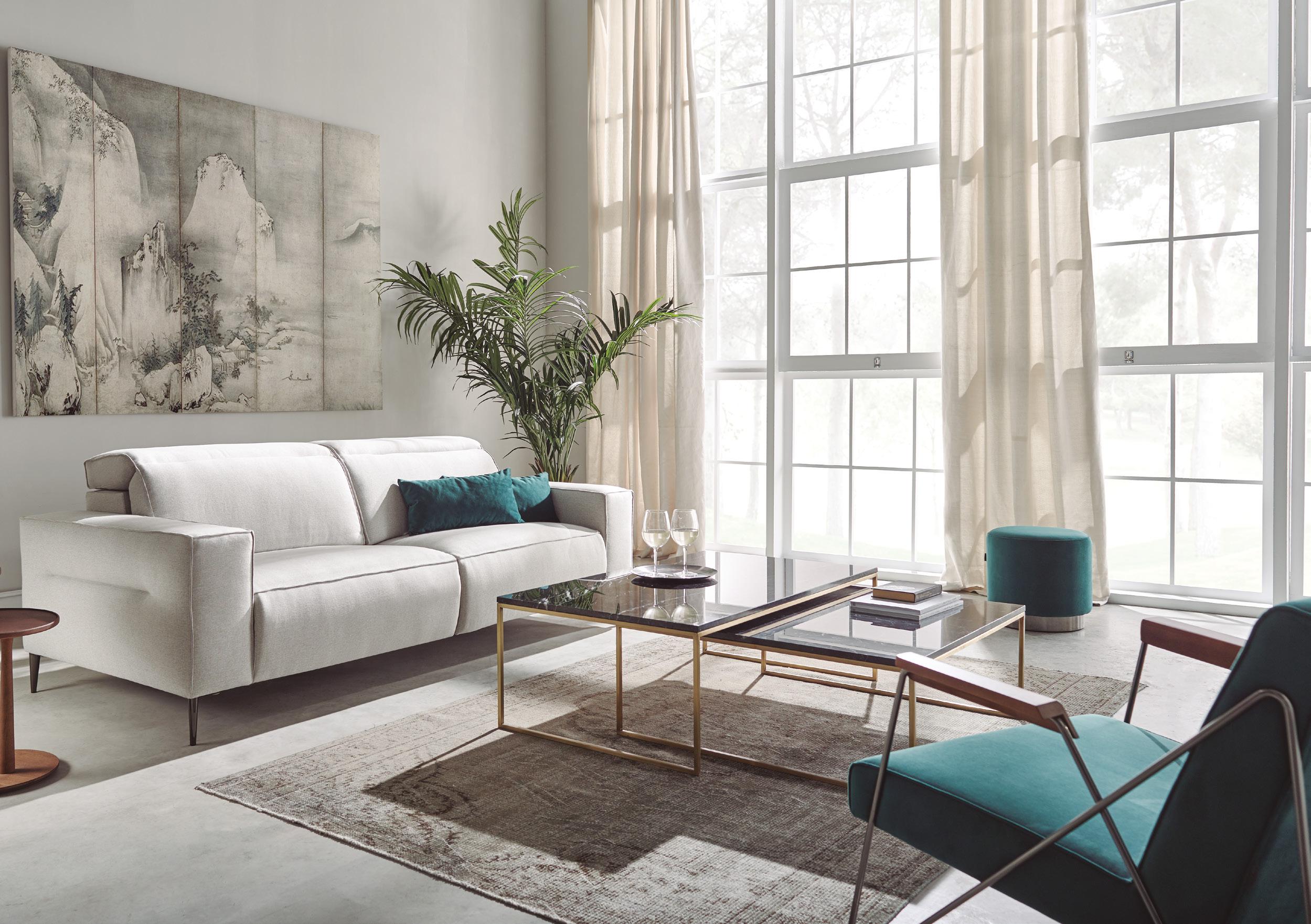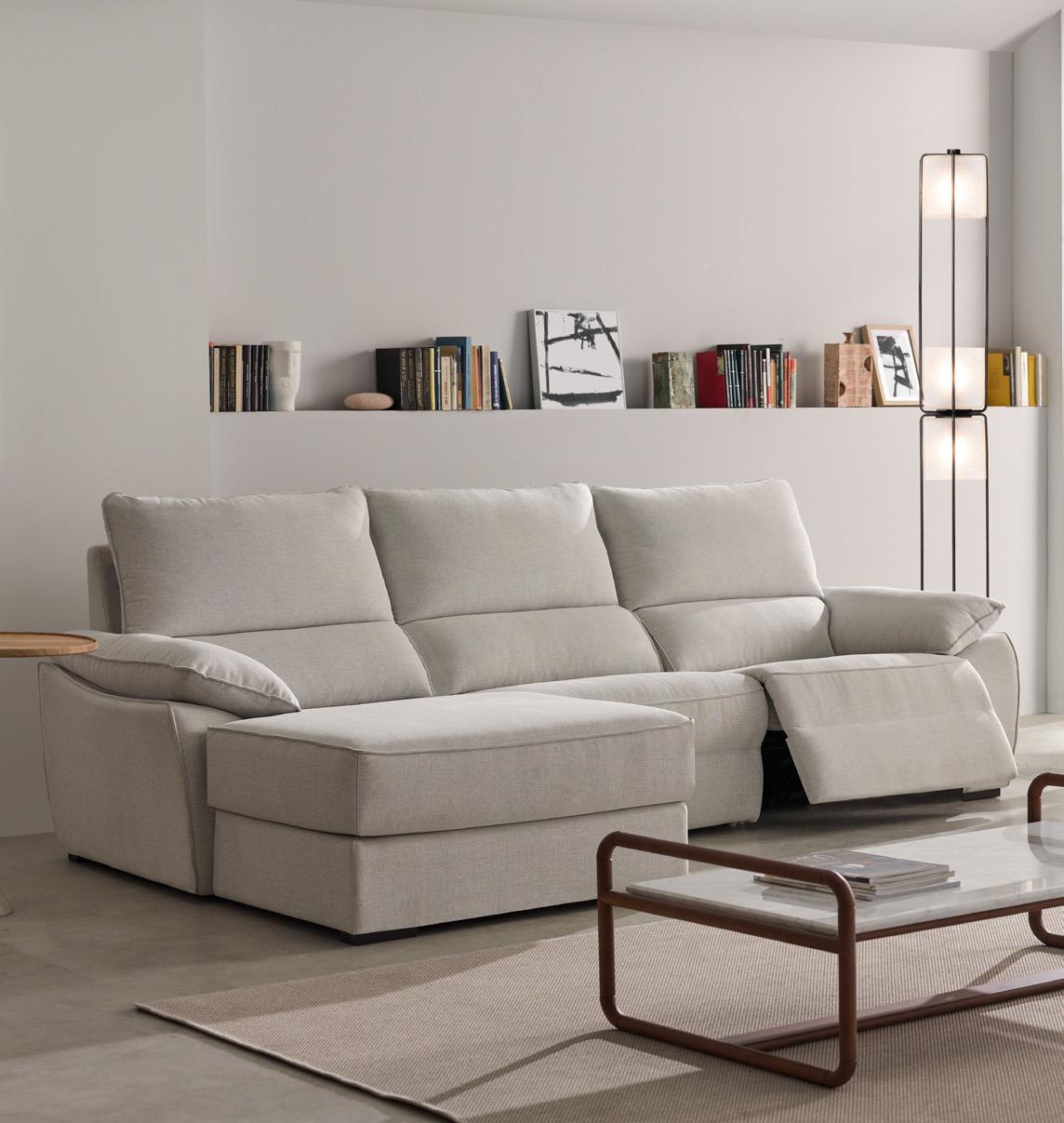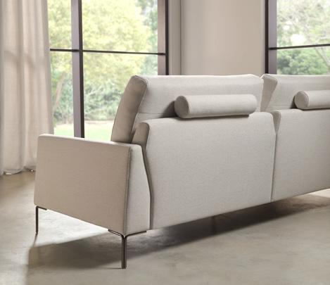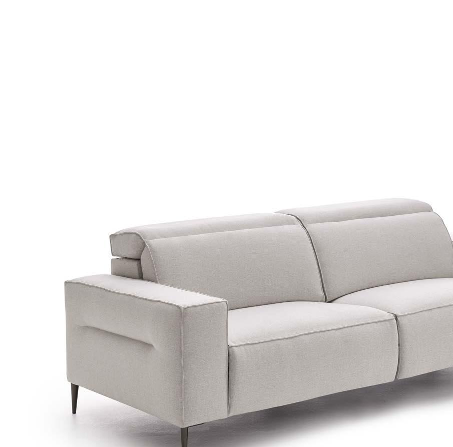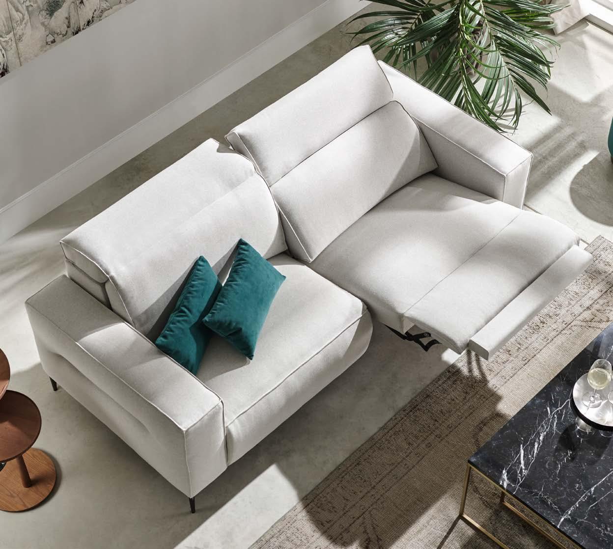 Reclining modules through a mechanism driven by electric motors of wall extension 0 make it a perfect sofa for the most demanding users. The motor is activated by a hidden button, placed on the side of each seat. The folding headrest provides the comfort of a high-back sofa, thanks to the full support of our back.