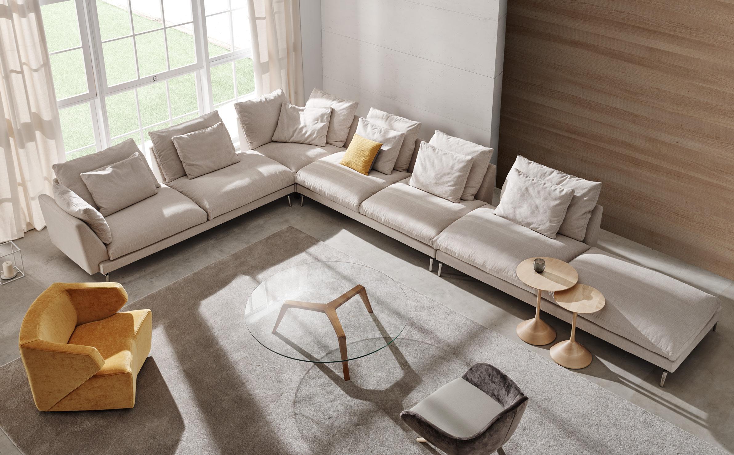 Suit, un modèle qui propose une grande variété de modules pour obtenir tant des compositions comme le client ait besoin. Cependant, Suit n’est pas un canapé modulable à utiliser; Suit est un clair exemple de notre savoir-faire, notre goût pour la fabrication minutieuse et il est le reflet de comment nos artisans sont capables de donner personnalité à la simplicité.