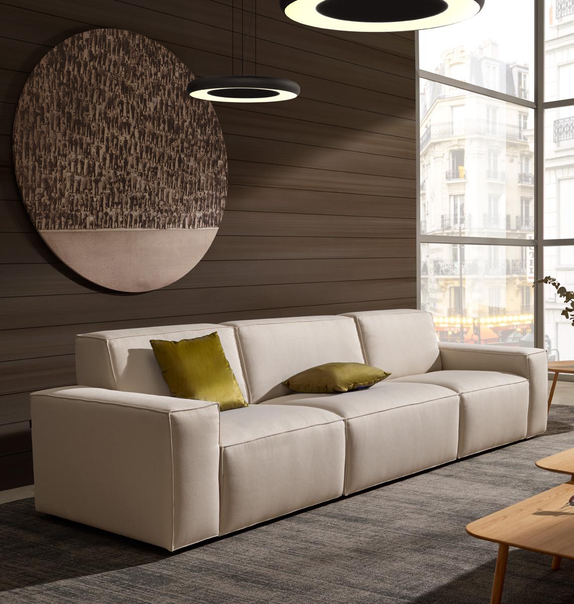 Basik modèle aux lignes droites et élégantes, en accord aux goûts formels contemporains. Canapé d’une grande variété modulaire qui permet tous les types de compositions pour la maison. Coussins de décoration (47X43cm) inclus pour chaque accoudoir. Les canapés et les modules de plus de 200 cm sont préparés pour pouvoir démonter les accoudoirs en destination.