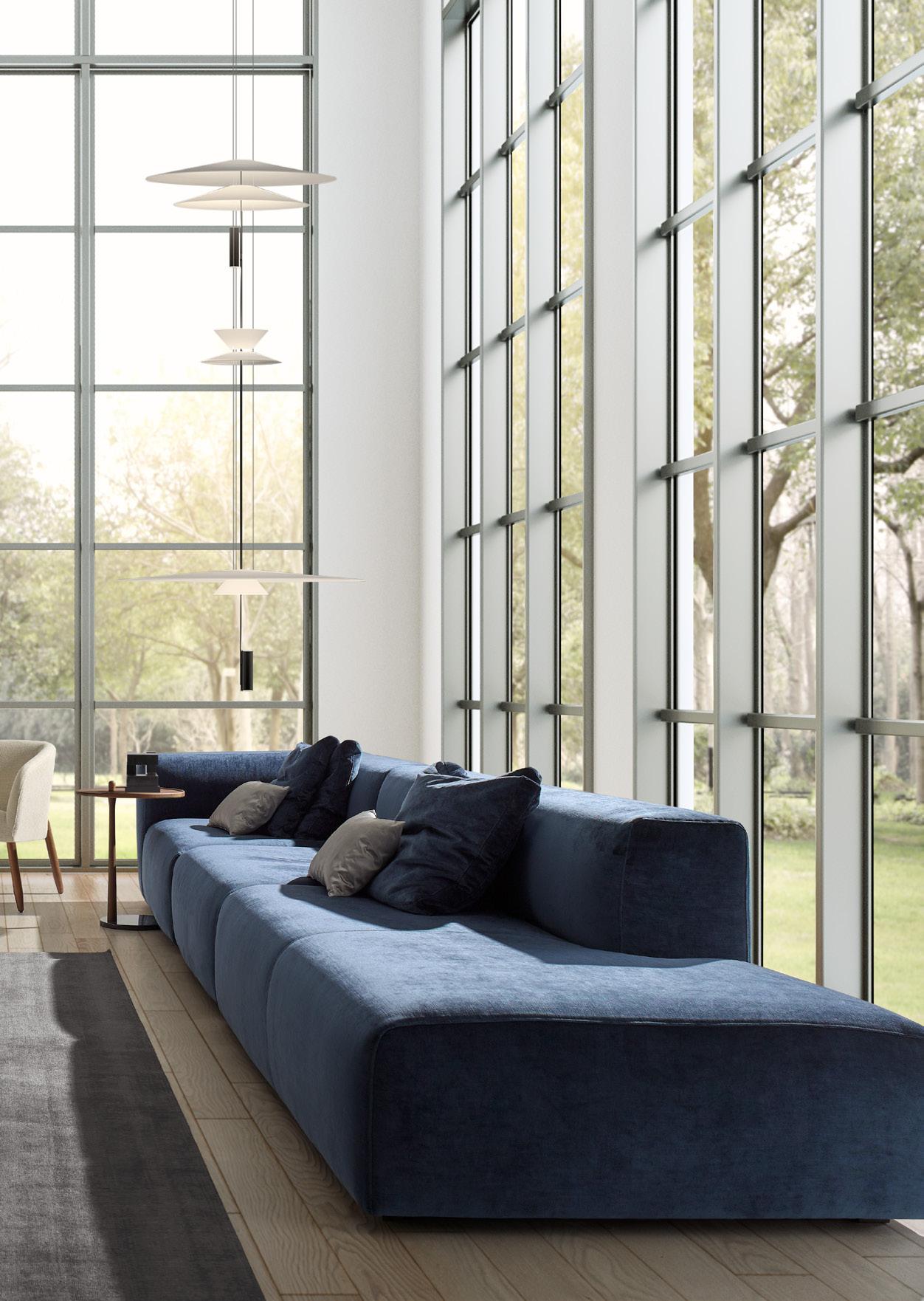 Ilum is a sofa that proposes a return to the classic canons of its typology, to the point that some components lose their own volumetry, dissolving into a series of cushions. A classic soul translated into a contemporary language through the use of line and form. Comfort is its original lenguage. A sofa with casual, bohemian and elegant look. Removable covers.