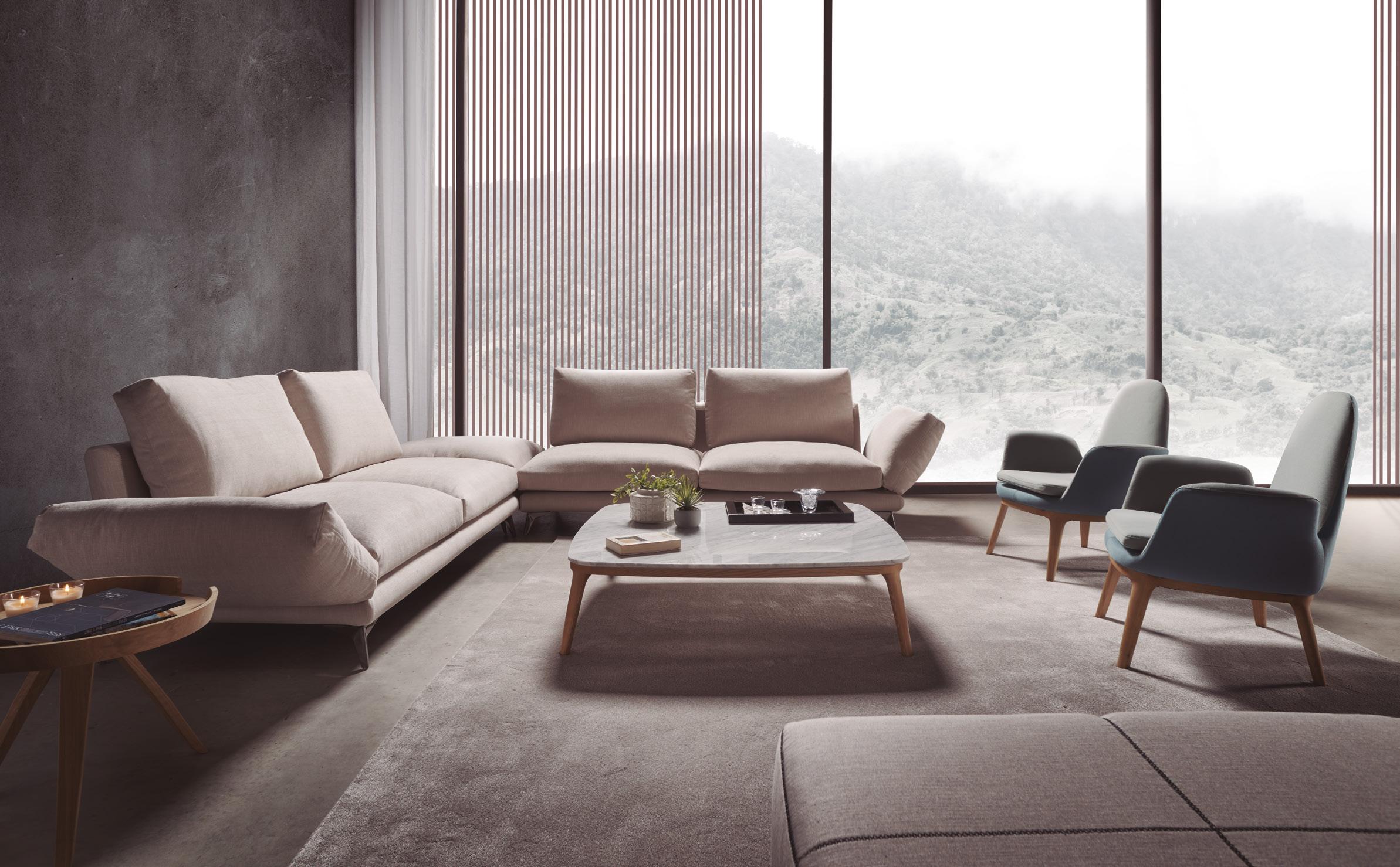 Must is a sofa with a minimalist and innovative spirit, which breathes lightness. It is ruled by clean forms and a great attention to detail. Sophisticated and attractive, worthy in its design but very versatile, suitable for any environment, either in a formal space or in a more relaxed place. A piece full of details that shine by making the most of the possibilities of good design and top quality materials.