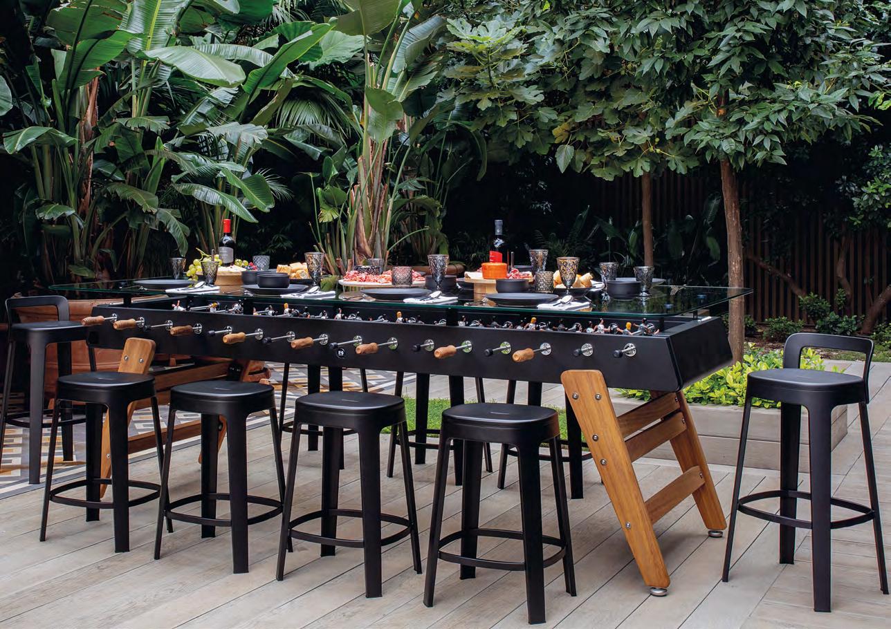 An ingenious idea brought to life in which gastronomy, playtime and design go hand in hand at the most bizarre table in the restaurant. A collaboration with the well-known chef José Andrés, that was born from an idea as simple as original: We put a glass top over our iconic RS2 so it can be used as a dining table without having to stop the game. José Andrés fell in love with our football table and was keen to bring it into his culinary universe. His word was our command. What began as the customisation of our football table for his Jaleo restaurants in Washington and Las Vegas, a very eclectic and Spanish project, became a new piece in our collection.