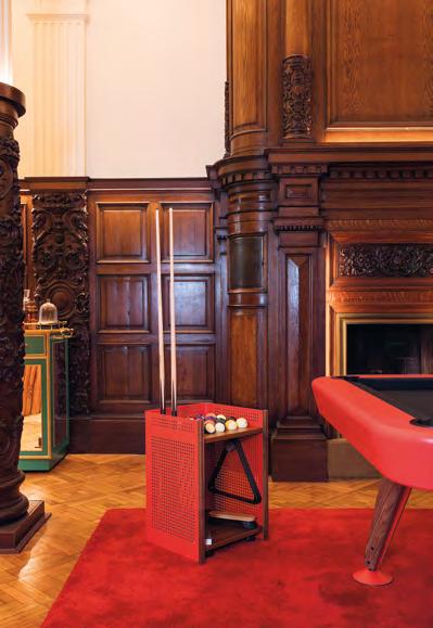 Mou and Diagonal play together as one. The Mou floor cue rack is the perfect mate for the Diagonal pool table. It keeps all your pool accessories safe in the same place. No more leaning pool cues against the wall. No more looking for chalk in every drawer. Each accessory has its own assigned space, and there’s even room for other items such as music or drinks, so your pool game can really be a chance to unwind, get away from it all, concentrate on something different, while enjoying some company and the challenge of the game.
