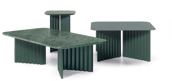 Plec is a collection of tables that are as happy together as they are apart. With their accordion -shaped legs, they love creating light and shade effects with their symmetrical folds and sensual colours. Their sculptural design, which might seem classical at first, proves capable of adapting to every atmosphere. Metal gives them an industrial feel, and marble, the elegance and authenticity. Colours confer personality and uniqueness. And with the combination of these elements, Plec reveals its savoir-faire. Quiet and restrained presence, without raising its voice, but uncovering the beauty of perfection.
