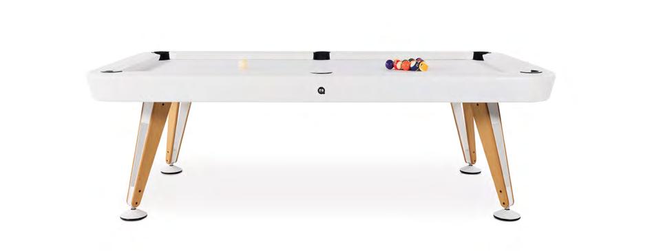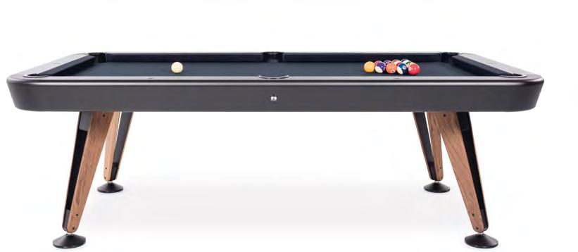 Just as a diagonal line crosses a space from end to end, the Diagonal pool table imbues any room with design, elegance and playful attitude. Its beauty emerges from its exquisite simplicity, the authenticity of its design and its blend of materials and colours. From sober black to bright white, striking red, subtle elegance of green or deep blue. Appeal for a game of precision and perfection.