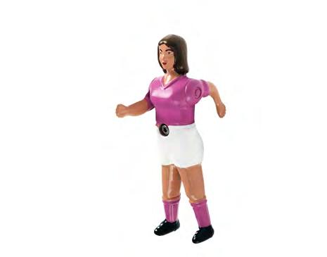 Siempre hemos creído en el poder del deporte como instrumento de cohesión y nexo de unión entra las personas. Ella es mucho más que la primera jugadora de futbolín. Es una declaración de intenciones. Nació de las manos de un escultor que, con dedicación y maestría, la talló con las proporciones de su compañero. La misma precisión y potencia de disparo. La misma resistencia y la misma pasión por marcar goles. En el terreno de juego de nuestros futbolines no hay diferencias. Ella y él juegan en las mismas condiciones.