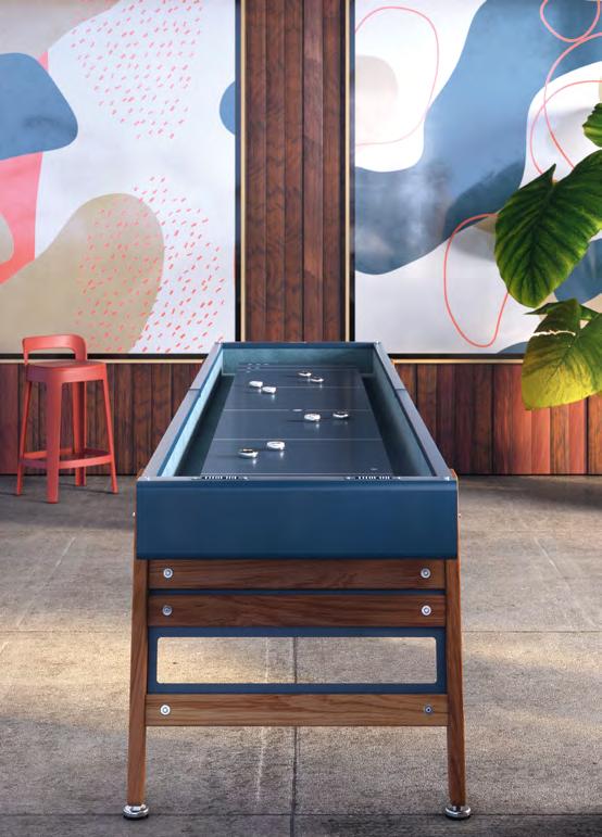 In play, as in life, you have to be bold, challenging the established limits without going beyond them. This is exactly what the Track shuffleboard table is like. Track dares to break the conventions of the classic shuffleboard game, with its design of sleek lines and firm, imposing beauty. It dares to innovate by making tough steel the undisputed star of the pitch. Track gives you a challenge in the distance, with only the path separating you and your desire to win. The precision of your shot connects the departure point and destination: to play.