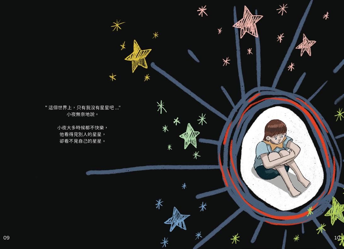 夜夜小星曲 尺寸 / 148mm x 210mm 星星其實一直都藏匿在我們的日常裡,祂們演化成獨一無二的模樣陪伴在我們身邊, 雖然看不見,不過能感受到星星陪伴的感覺。 “在這個世界上可能只有我沒有星星吧?” 小夜無奈地說著。 小夜看得見別人的星星,卻看不到自己的星星...... 17