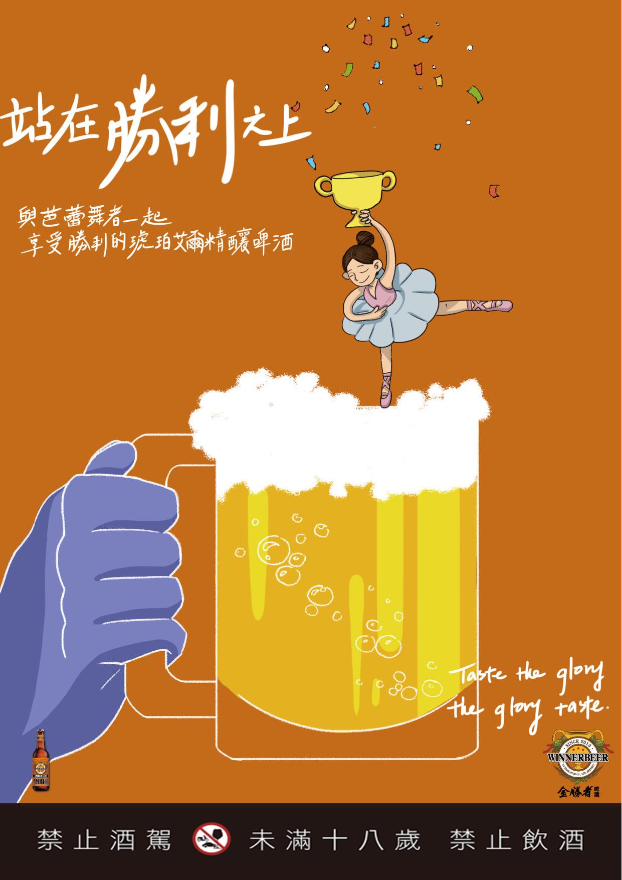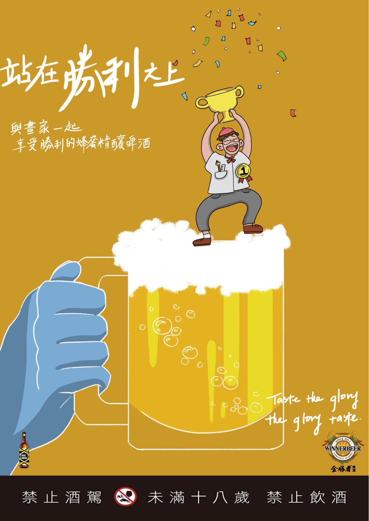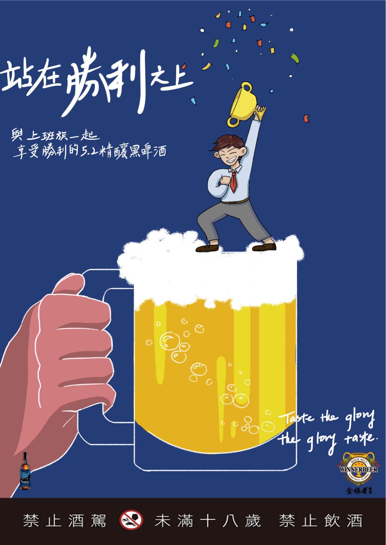 喝了金勝者啤酒就能和他們一樣, 站在勝利之上。