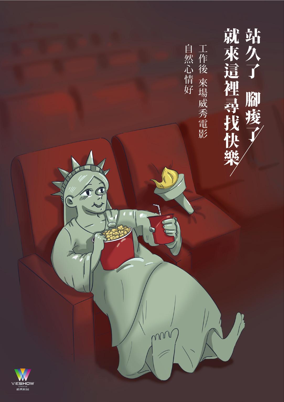 威秀影城宣傳海報 和自由女神像一起下班後舒適地休息, 來威秀影城看場電影重拾快樂心情。 疾病知識宣傳海報-百日咳 E F 35