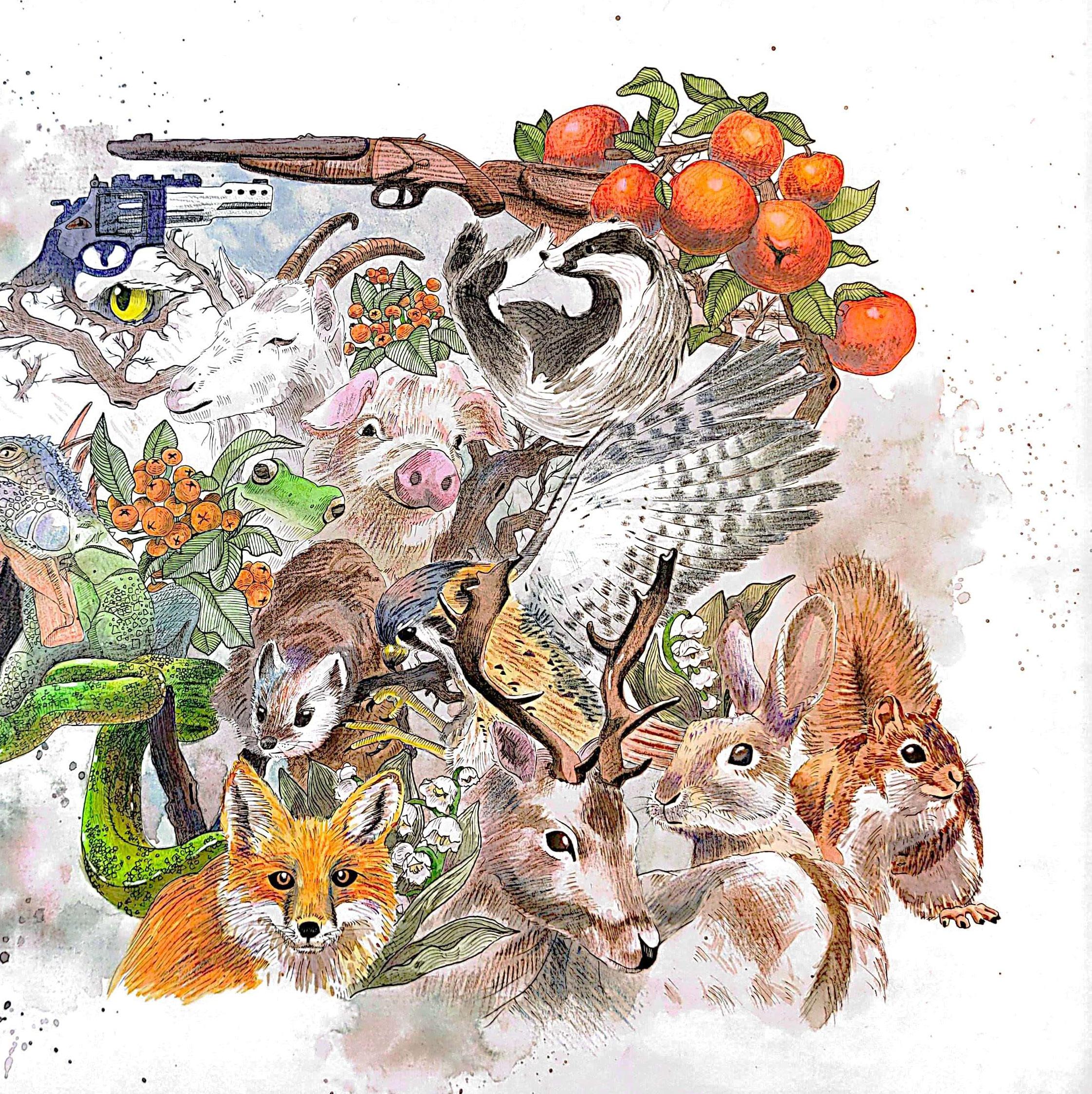 用不同的生物結合成狼的各個部位,其中還包含了槍的元件。