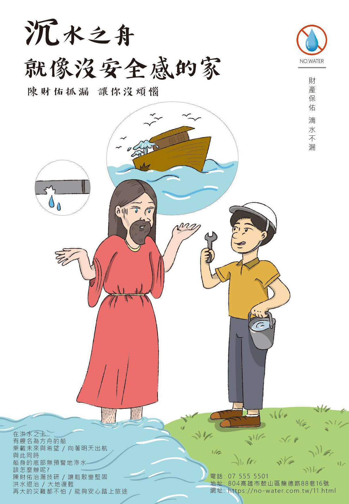 陳財佑抓漏 阿財不僅幫房屋抓漏, 就連船也不需要擔心會再漏水, 有阿財就能擊退洪水, 強調堅固、耐用和品質保證。 產學 - 六合夜市系列稿 H G G 37