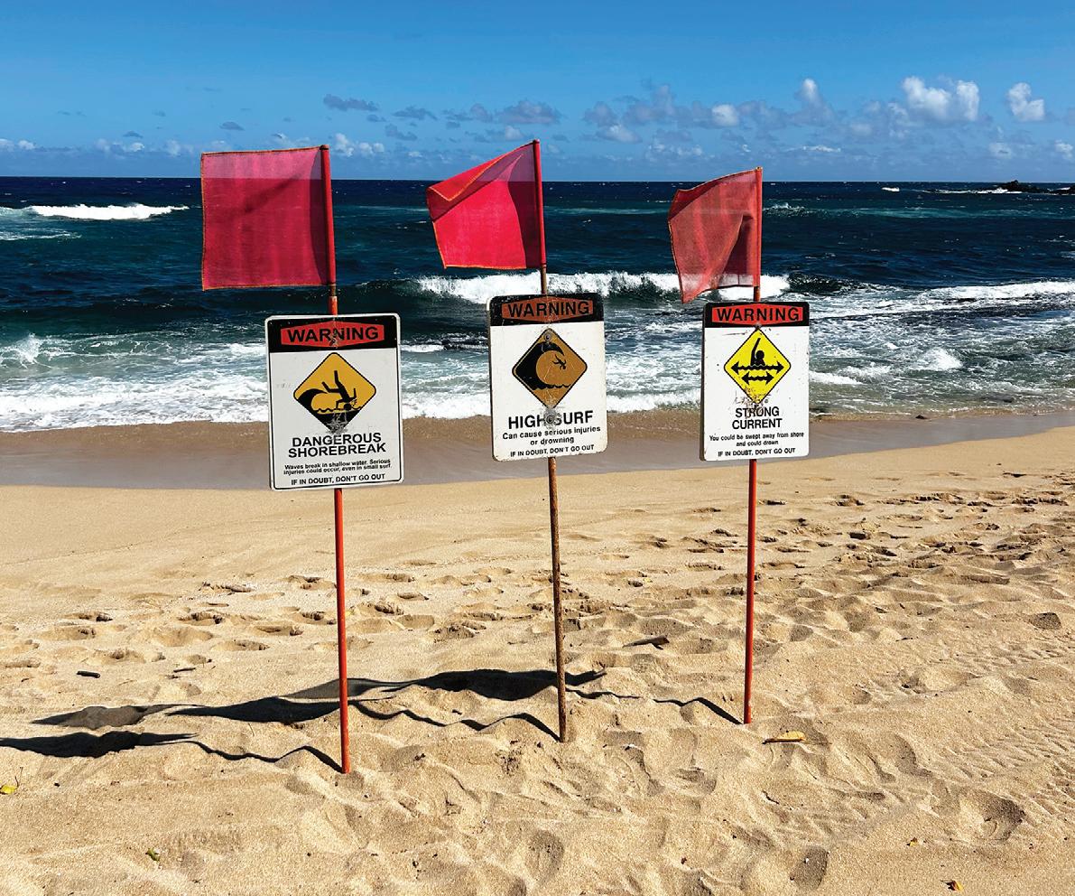 • Swim only in designated, lifeguard-patrolled beaches. Check with lifeguards for today’s wave conditions.