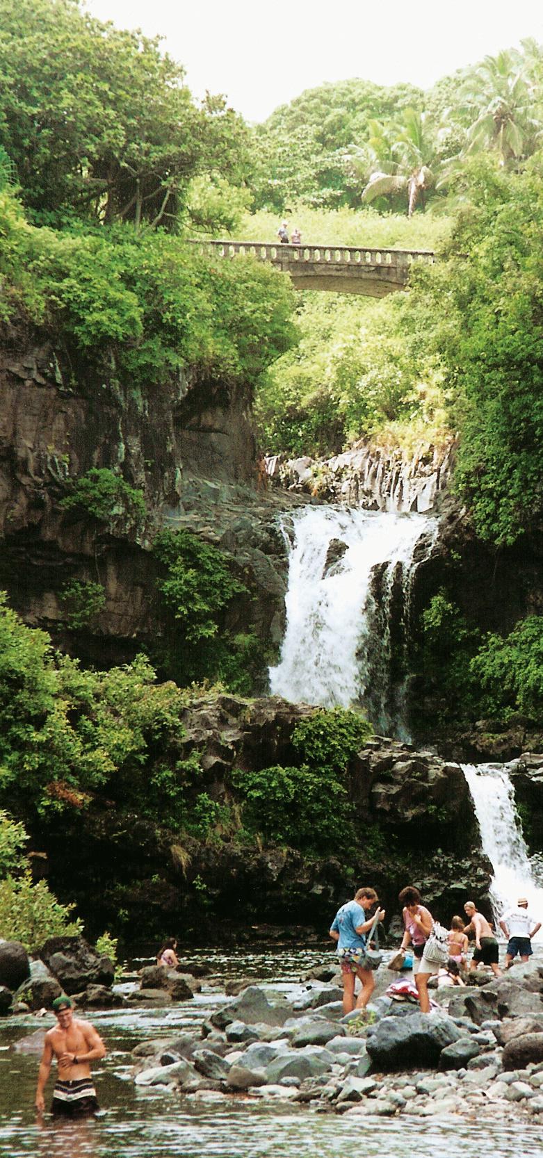 There have been numerous deaths in the popular Oheo Gulch or “Sacred Pools” area of Haleakala Park. About half of the deaths were due to drowning and half from falls, according to the Hawai'i Department of Health. The federal park service has in stalled gate and signs at the access stairway to keep visitors out when water reaches dangerous levels. It’s great fun but . . . OBEY SIGNS. TAKE NO CHANCES.