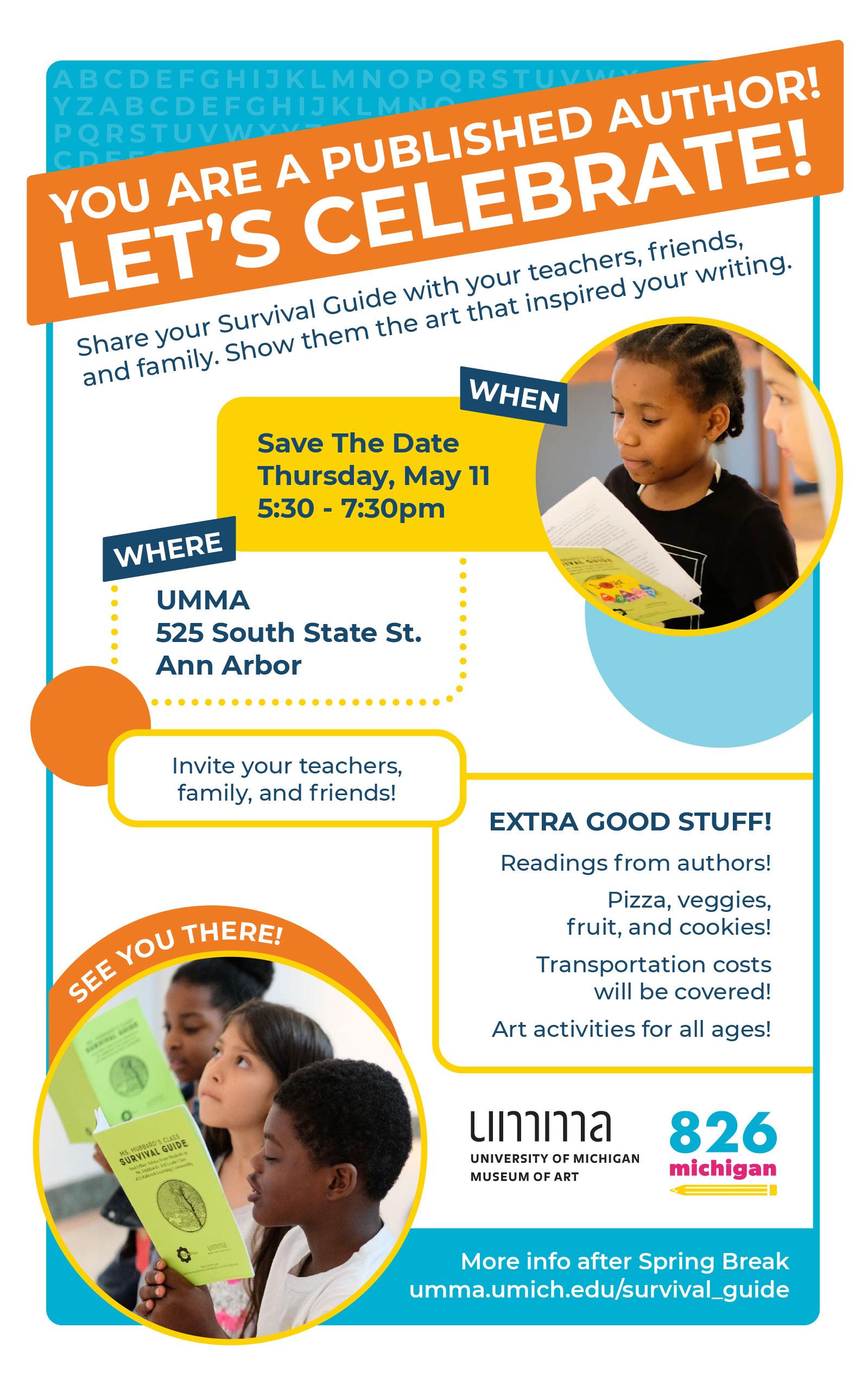 This isn’t an ordinary trip to the museum! During this field trip program, students imagined that they were shrinking down to the size of a paper clip and then jumping inside of different art pieces at the University of Michigan Museum of Art. They worked with volunteers and museum educators to write creative survival guides, giving advice for how readers might survive inside of these different art worlds. Students’ writing was then published in a book—the one you are now holding. Students toured the museum and saw the art that they wrote about in real life, reading their newly-written survival guides in front of the art.