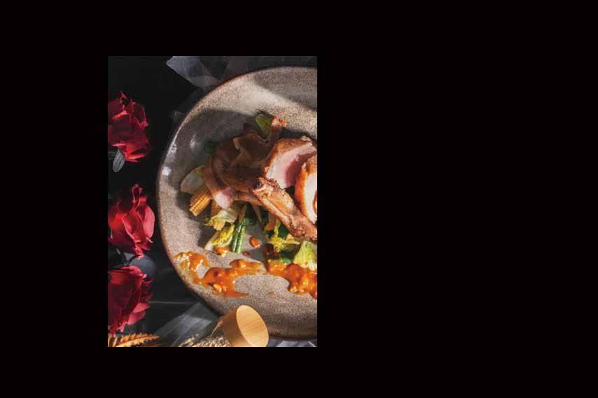 Seasonal vegetables/Tomahawk pork chop/Kumquat sauce
