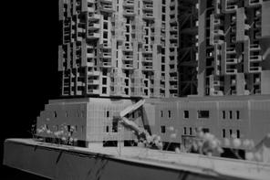 第二階段 / 在大型的尺度內,進一步將"社群"與"社區"兩個概念細分, 以兩層樓為一個單位的社群擁有相同的共享廚房、花園、交誼廳,而整個社區 共享的空間分布在各個樓層之中,透過一條串連動線將其連結起來,建立起在 都市中垂直化簇群的集體居住。