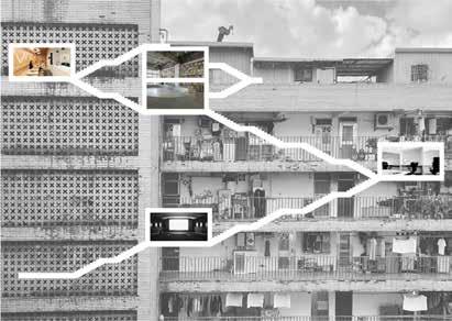 而在各式準則管控下衍生出的住宅單元是被標準化的,社 會住宅提供一間間標準化的居住空間,期待一個個符合標準化的 房客入住,制式化的住宅單元與社區規定使物業在管理上顯得相 當方便,同時在這樣標準化的社區內,人們被規定甚麼身分的人 能夠住在甚麼樣的房型,能夠住多久……。在這樣標準化的社區 框架底下,原來蓬勃與外顯的家戶特質也跟著一個個消失了。