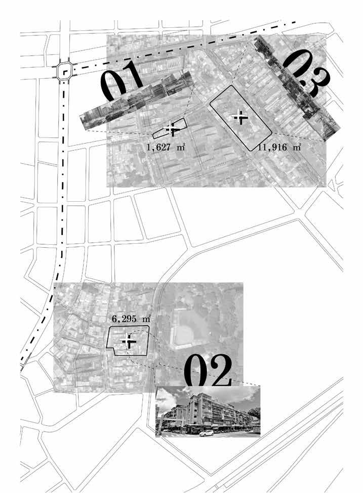 依循在進入設計之前研究的住宅案例以及資料,在尋找到合適的基地 後,我透過都市尺度觀察三塊基地分別在都市的地理位置以及周遭所擁有的都 市機能,綜合實驗計畫三個階段分別需要達到的目標以及我期待居住實驗能夠 完成的使命,分別訂定出三個計畫階段的名稱: