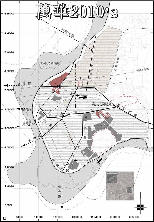 4/都市更新範圍: 透過閱讀萬華區的都市計畫書,了解上位計劃的都市規劃目標,依循 公部門所劃定的都市更新範圍,來作為我設定的住宅實驗之基地。