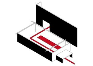 考慮到尺度放大後不同住戶會有的不同需求,分布在各個樓層中的共 享空間滿足各種情境的需求,視聽室的空間提供人們能夠定期舉辦電影之夜; 共享辦公室回應了未來萬華將會有更多的年輕族群到來,居家辦公成為一種新 的選擇;共享閱讀空間是一個貫穿兩層樓的玻璃量體,兩層樓的使用情境不同, 一樓是能夠讓住戶放鬆的空間,另一樓則是兒童閱讀的空間;十樓的吧檯與半 戶外的走廊面對整個青年公園,人們可以在休閒時帶著一本書坐在面對都市綠 帶的方向休憩。