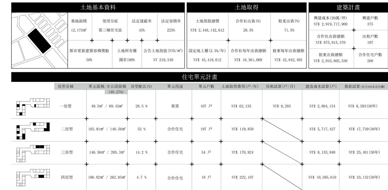3/土地所有權(價格): 閱讀國外合作住宅成功的案例,大部分都是尋找國有土地,並採取設 定地上權的方式取得土地,我也希望採取相同的方式長期持有土地使用權作為 實驗的基地。
