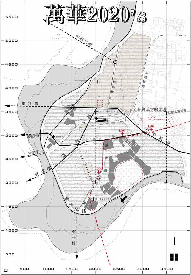 1/萬大線路線周邊: 2025年即將開通的萬大線,是個讓萬華翻轉現況的契機,也預計會帶 來更多的流動人口及居住人口,面對未來有許多變數的捷運路線周遭地區,是 適合作為未來住宅實驗場的區域。