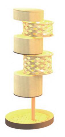 ,增添了流動的曲線。旋轉的動感讓使用者更親近產品,並 可讓光線為環境注入活力。燈光由內而外的綻放下讓「旋竹」成